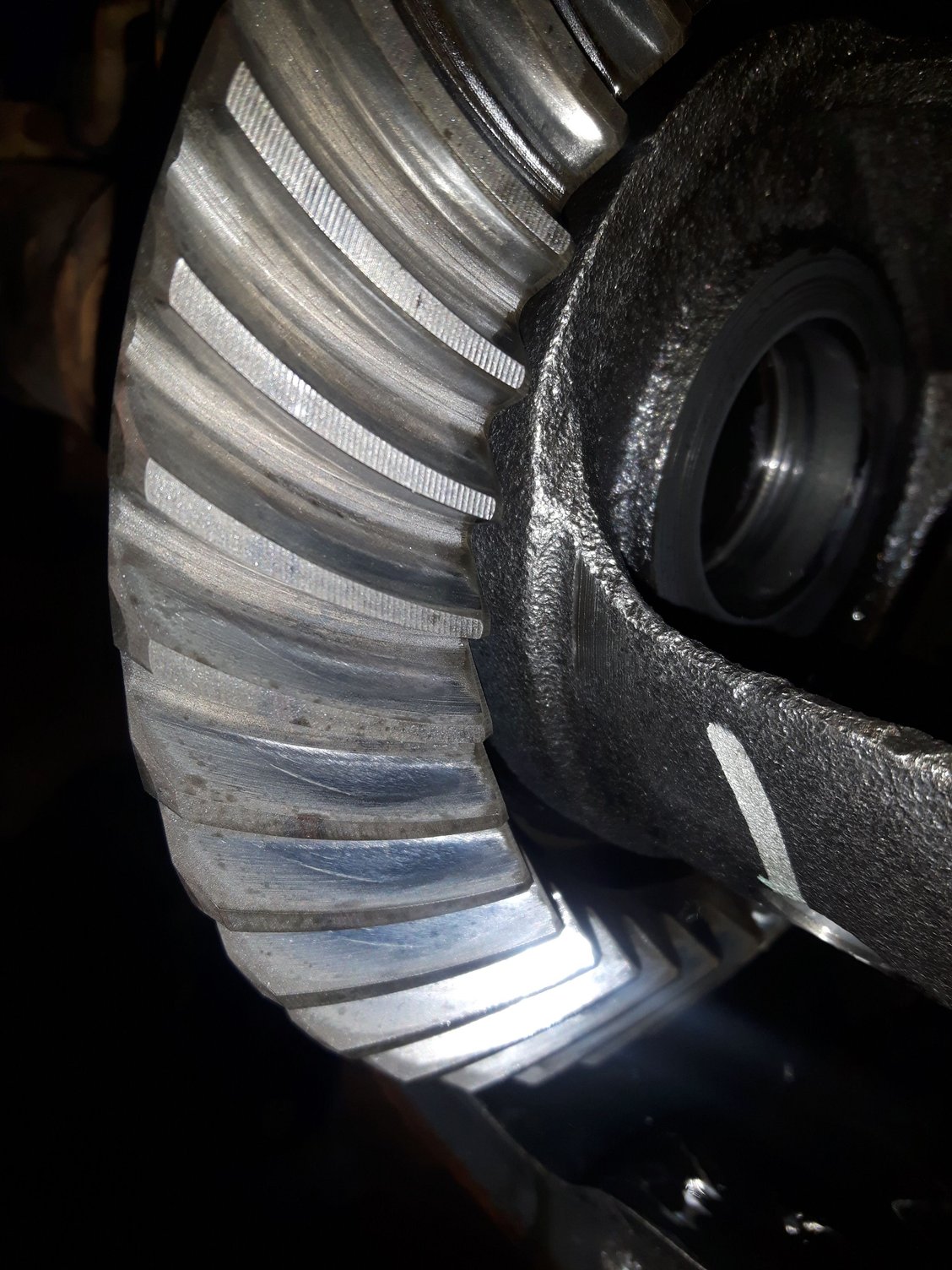So I bought my first Jeep Sept 2019, a 2000 XJ Limited 4.0 for $2600 CAD mostly stock with a 3 inch lift drop shackle and blocks in the front on 33"s and this is my DD. I have about 8k into it now including ordered parts. Among other upgrades I've been reading about axle swaps for a quite a while now as I have a D35 in the rear and a D30 in the front. I have read a lot of good things about built D30s up to 35 inch tires but have been warned to carry an extra set of axles and took kit, diff fluid etc incase my d35 shafts break on my 33"s, I dont mind being prepared but I do mind having high risk of breaking an axle on the trail. On top of this, here is some sketchy news; after 6 weeks of ownership my rear pinion seal went and my positraction pack was worn out so instead of paying 600 for a shop to fix it I paid them 1250 to install a yukon grizzly locker, in the process they told me that the P.O. had it set up with 0 backlash and there is noticable wear on the ring gear (in pic below) It would be 3 weeks to get a new ring and pinion so I told them to put it back in. I have yet to check my front (Critisism expected). Hopefully the front is a prettier story. This being said, I would like to be able to handle 35" M/T s in the summer comfortably without babying it through the woods but I have some really nice Cooper Discoverer M+S winters that are 31.6" and I want to run them during winter here in New Brunswick, Canada. From what I understand my D30 has the potential to suit my needs if I build it, can a D44 or C 8.25" rear ride on 31.6" fine during the winter I always hear of how big you can go but how small can you go? Out of curiosity, can anyone tell me how small of tires you could reasonably put on a d60? I want to put a zip locker in the front and a grizzly locker in the rear, how would you recommend gearing them for my wishes to suit up to 35s in the summer down to ~31.5". Lastly will a D44 or C8.25 allow my full time 4wd to work properly? I imagine it will but want your input as I am a big fan of full time DDing in NB. Thanks in advance for your input everyone. As she sits today. Weird rust on the hood the underneath is very clean for the most part other than rear shock mounts.0 Photo from the shop \"4 Wheel Parts" during locker install