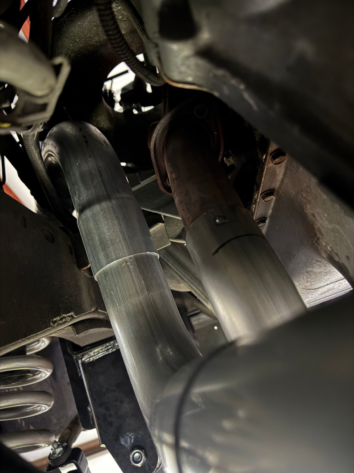 The xj just doesn’t have enough power at 280,000 miles when loaded down with people and gear in the mountains. I’m going to install a Chinese turbo. I’m just attempting to use internet parts and a bit of mechanical know how. Being a success or a failure, I will post it all. Here a a few pics of the beginning. Cut out what felt was necessary Going from 2.0 to 2.25” exhaust using online pipe kit and a saw. I plan to build a support bracket off the engine and wrap the exhaust for safety and heat retention. Just installed steering crossover and springs as well