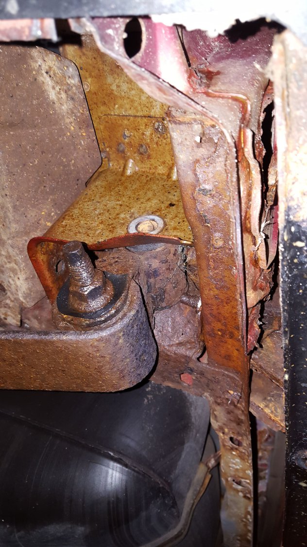 I cut the shackle in half and found the bolt had snapped at the head but also at the weld nut. The nut took a small chunk of metal off the frame rail too so I cut the floor. I got a slightly longer bolt and used a washer, a drilled piece of steel and a new nut in there nice and tight. Worked well, I didn't want to cut the floor but I got over that...