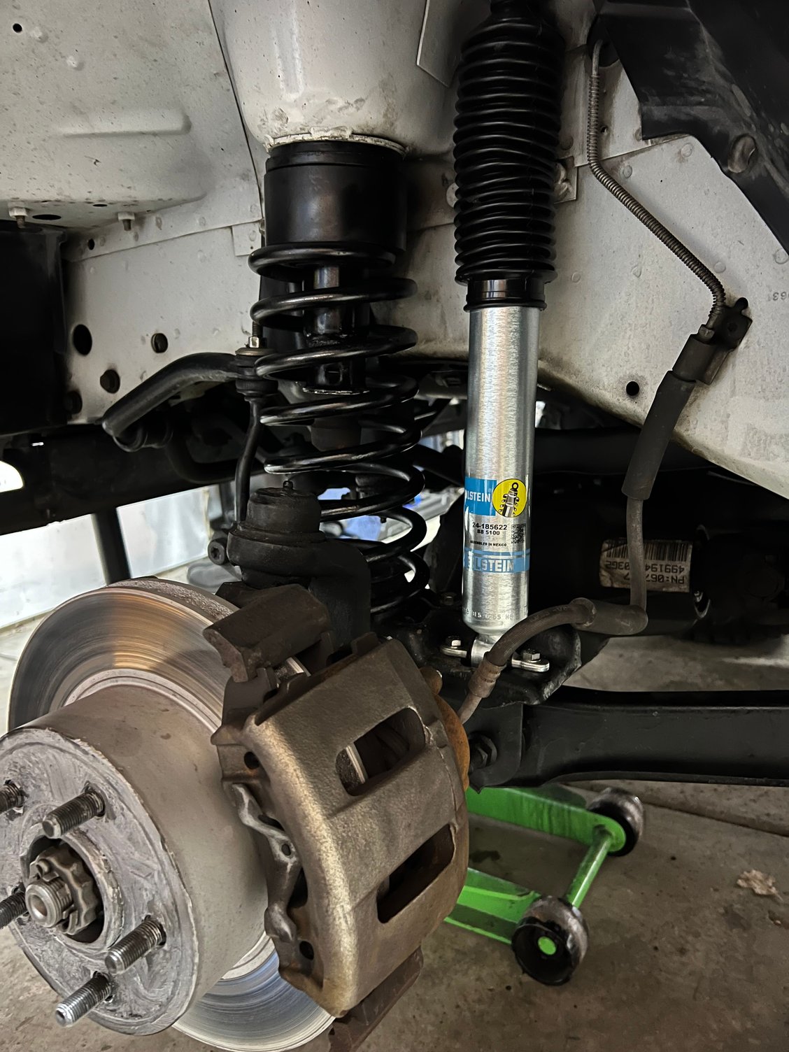 Front: 2 spacers, new isolators, stock springs, 2 extended bilstien 5100s.