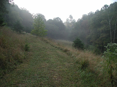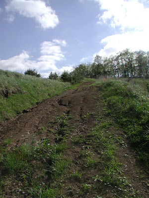 When it rains, the trail gets very slick. This summer, I tried to drive out and basically stalled it with all four wheels spinning. In itself, that wouldn't have been so bad, but as we tried to backup back down the hill the truck wanted to fishtail on me. We almost lost it over the edge of a hill along the trail. Luckily (?), we ran sidways into a tree that kept us on the trail. Nice big dent in the fender and door reminds me of that day on a daily basis.