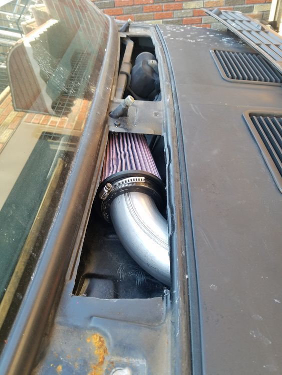 I have a 2.5L with carb in my 85, I am thinking of possible a straight up through the hood pipe with a tractor type filter on top, more military looking for certain.