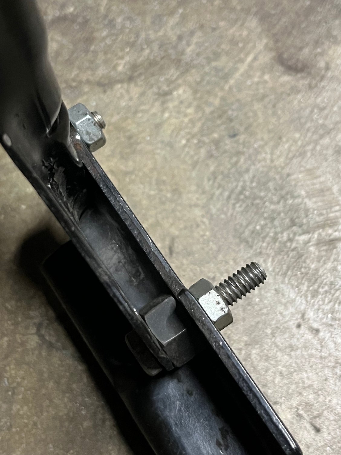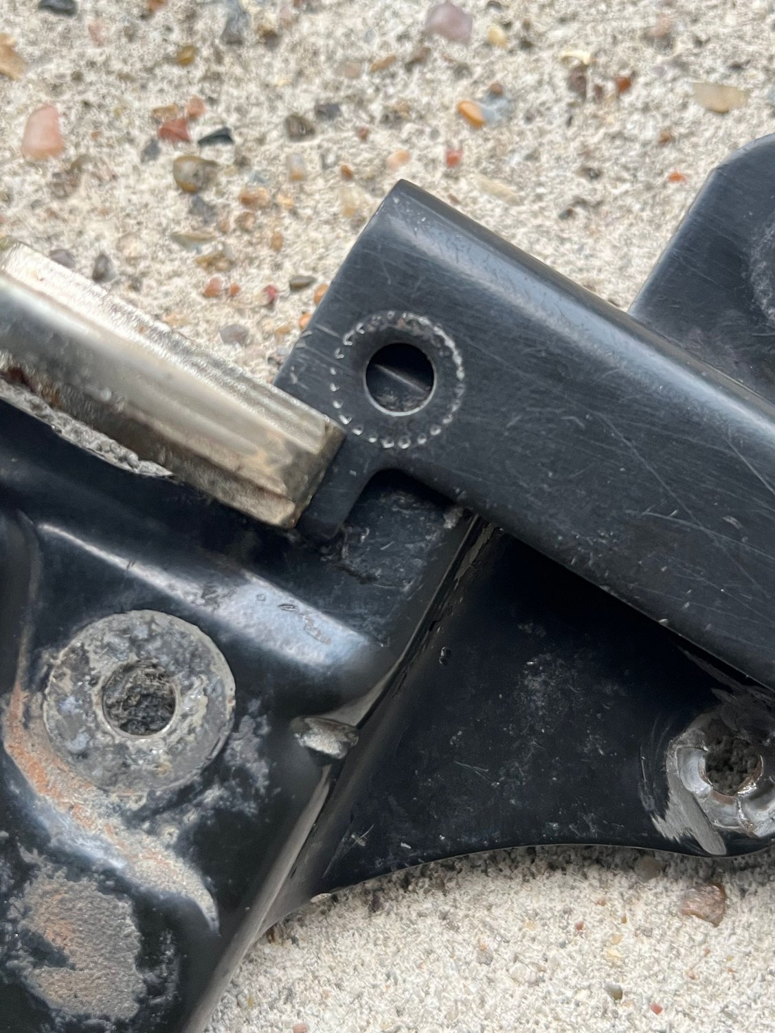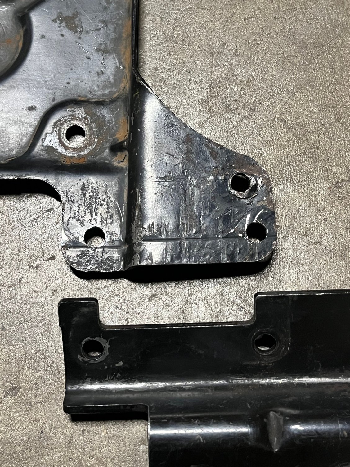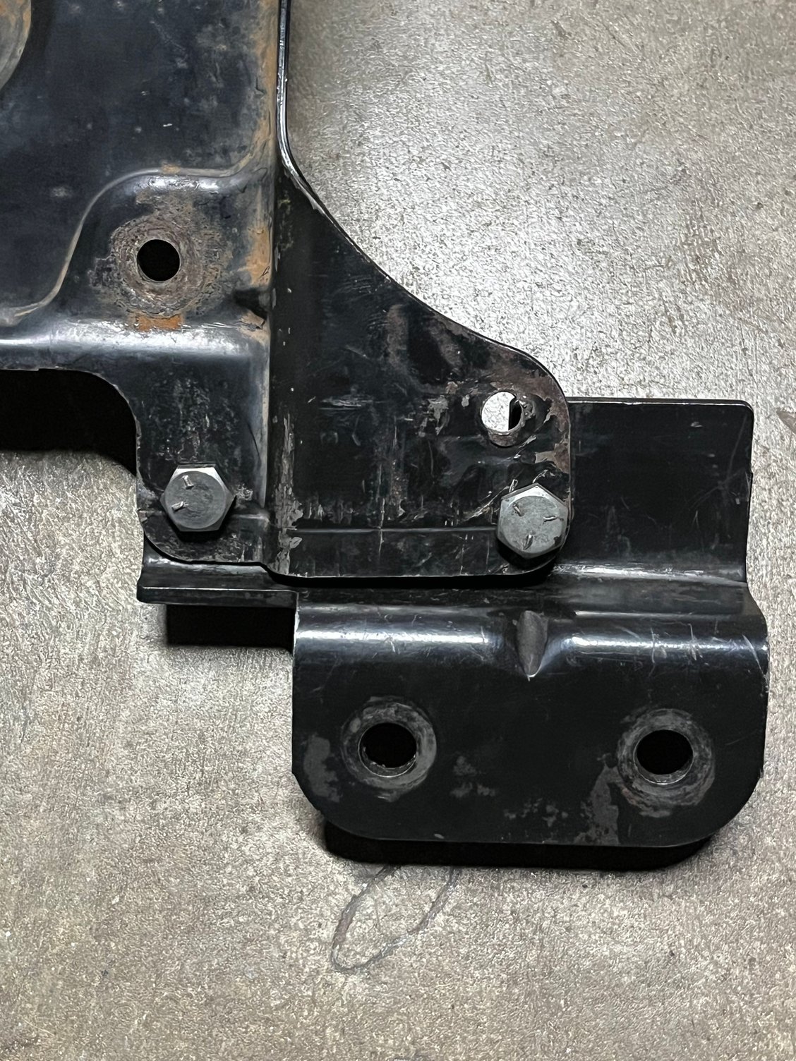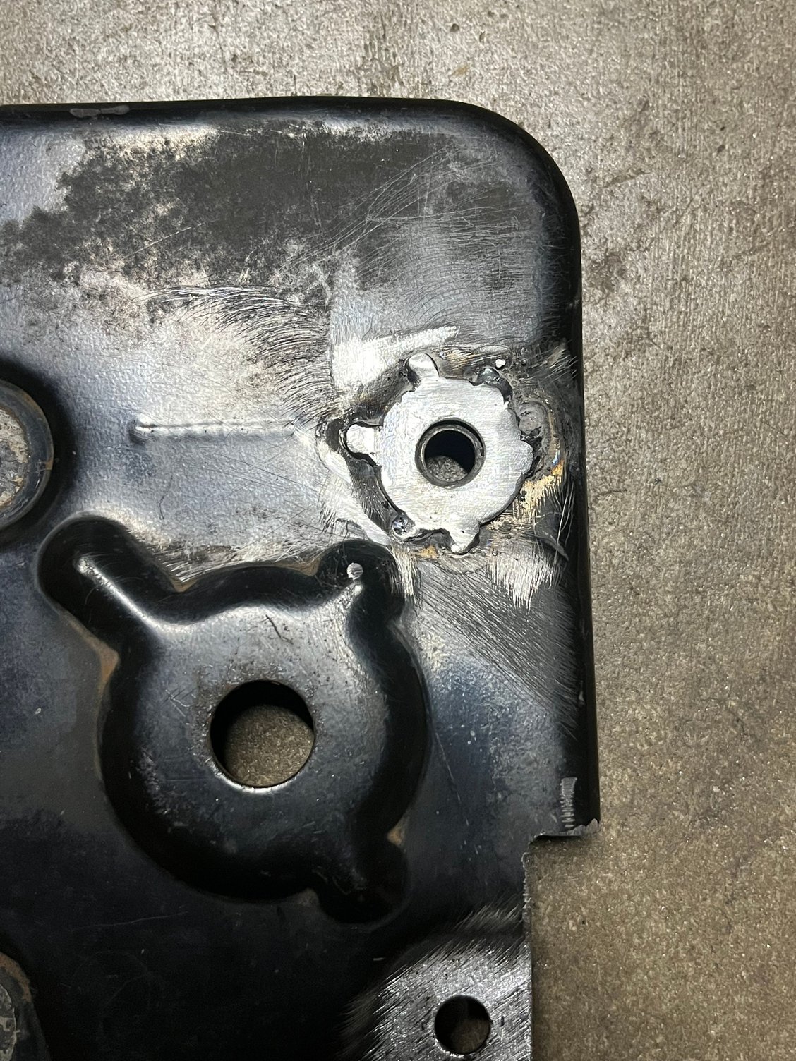 I also tack welded a flat washer into the recessed around of the bolt hole. The washer is slightly higher that the surface of the bracket, for ease of bolting the flat bracket on.