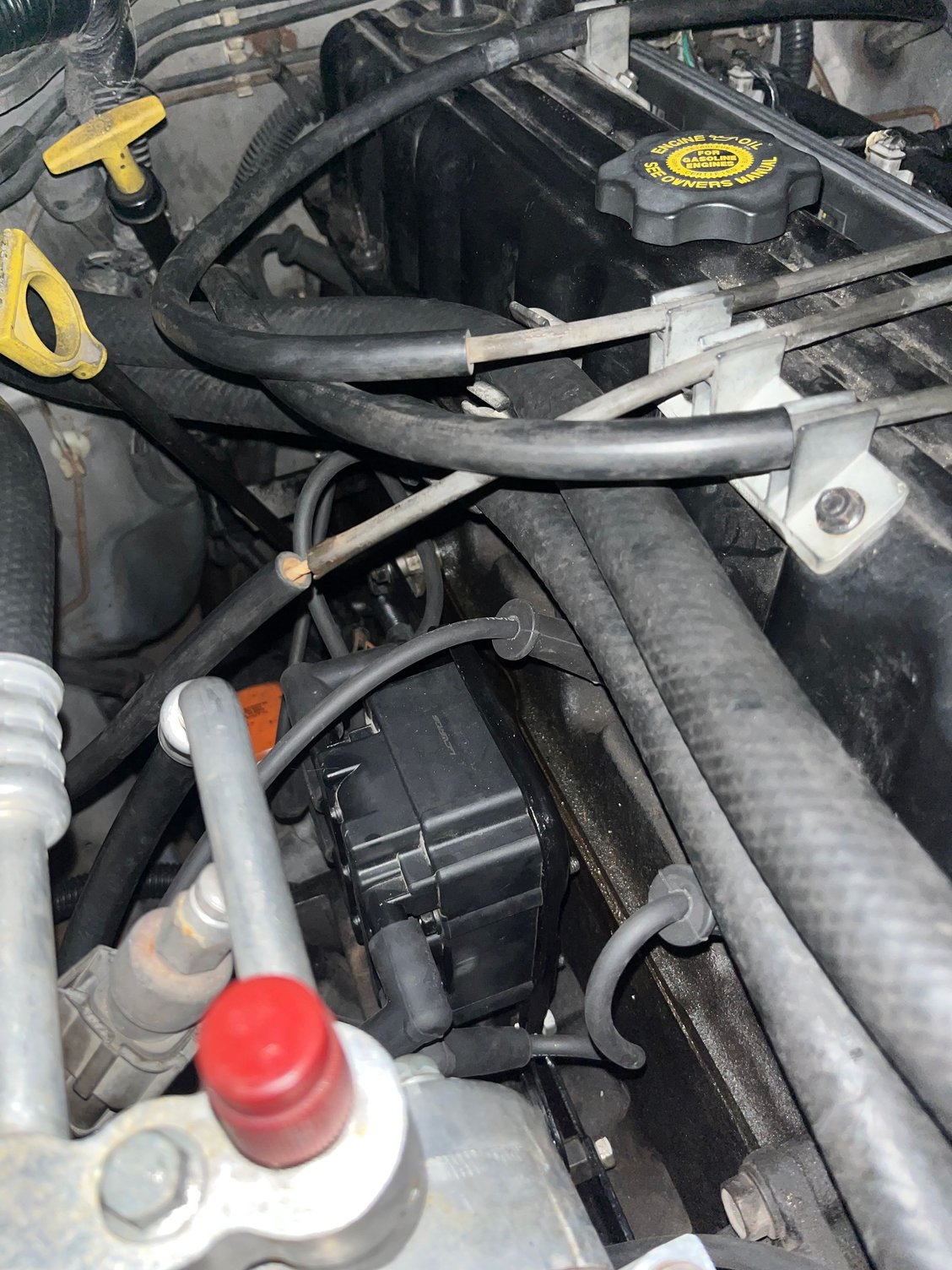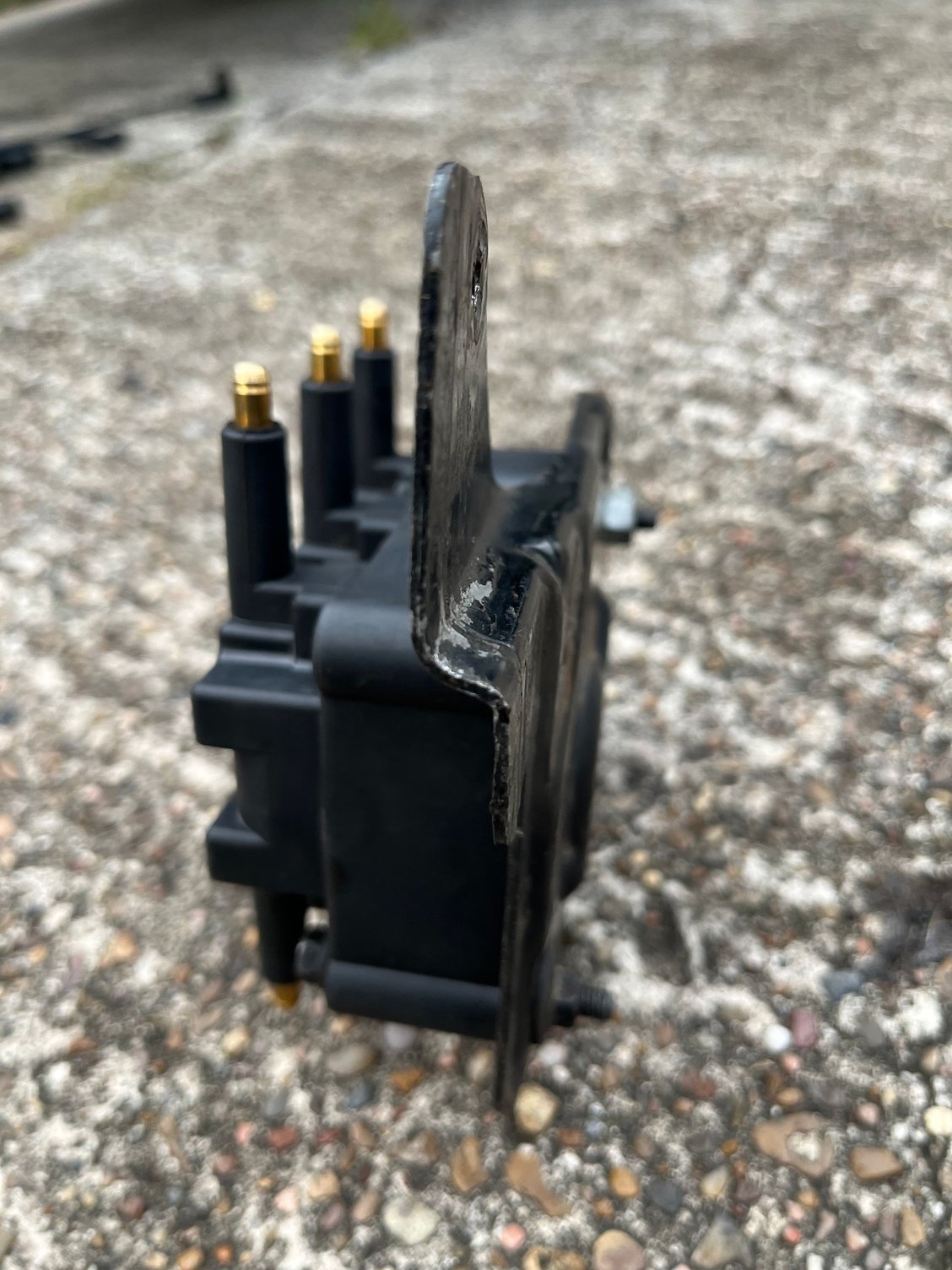 A coil bracket from a 4.0 XJ that has a distributor.