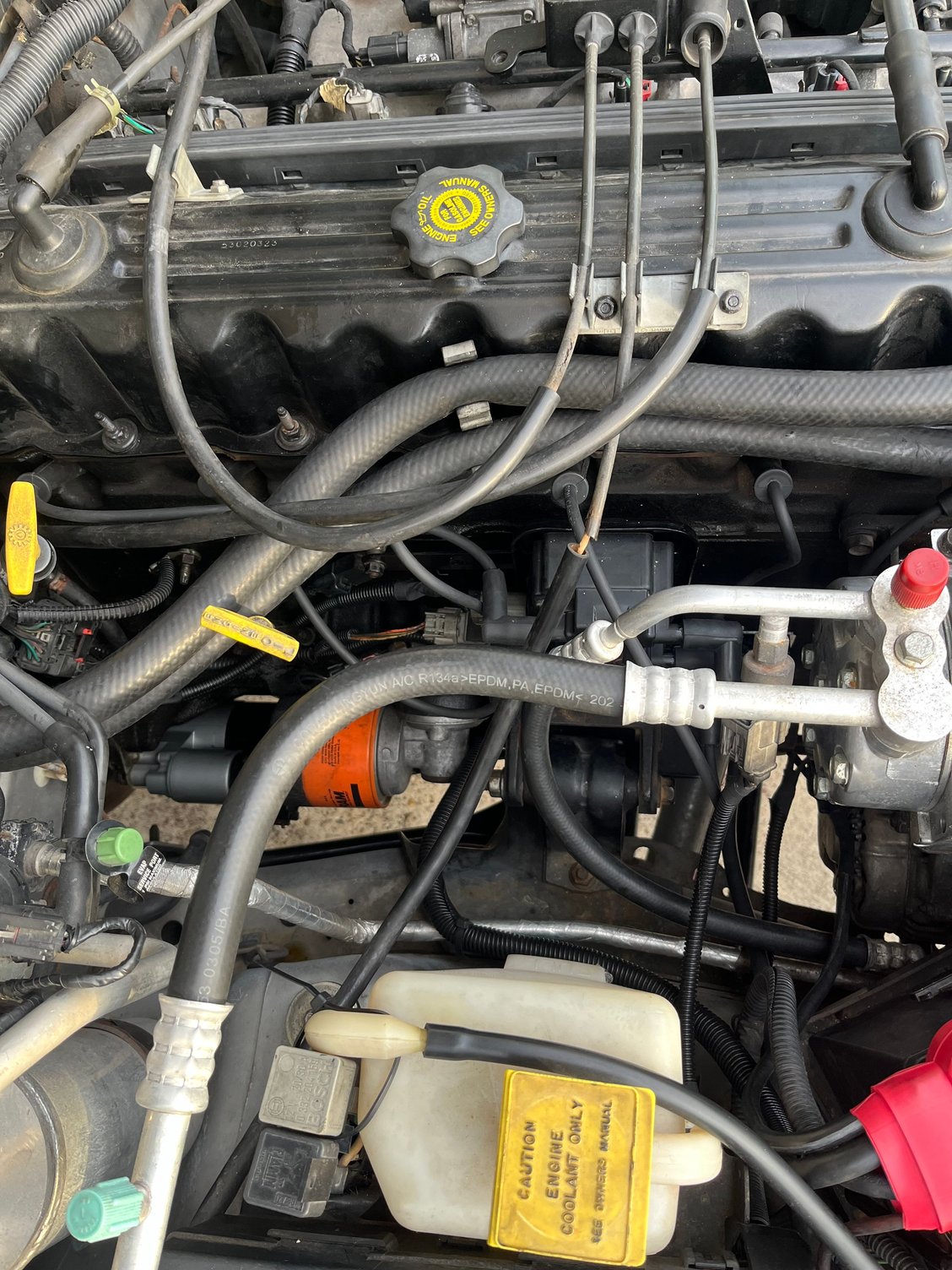 No plug wires from coolant reservoir to engine block. Cleaner IMO