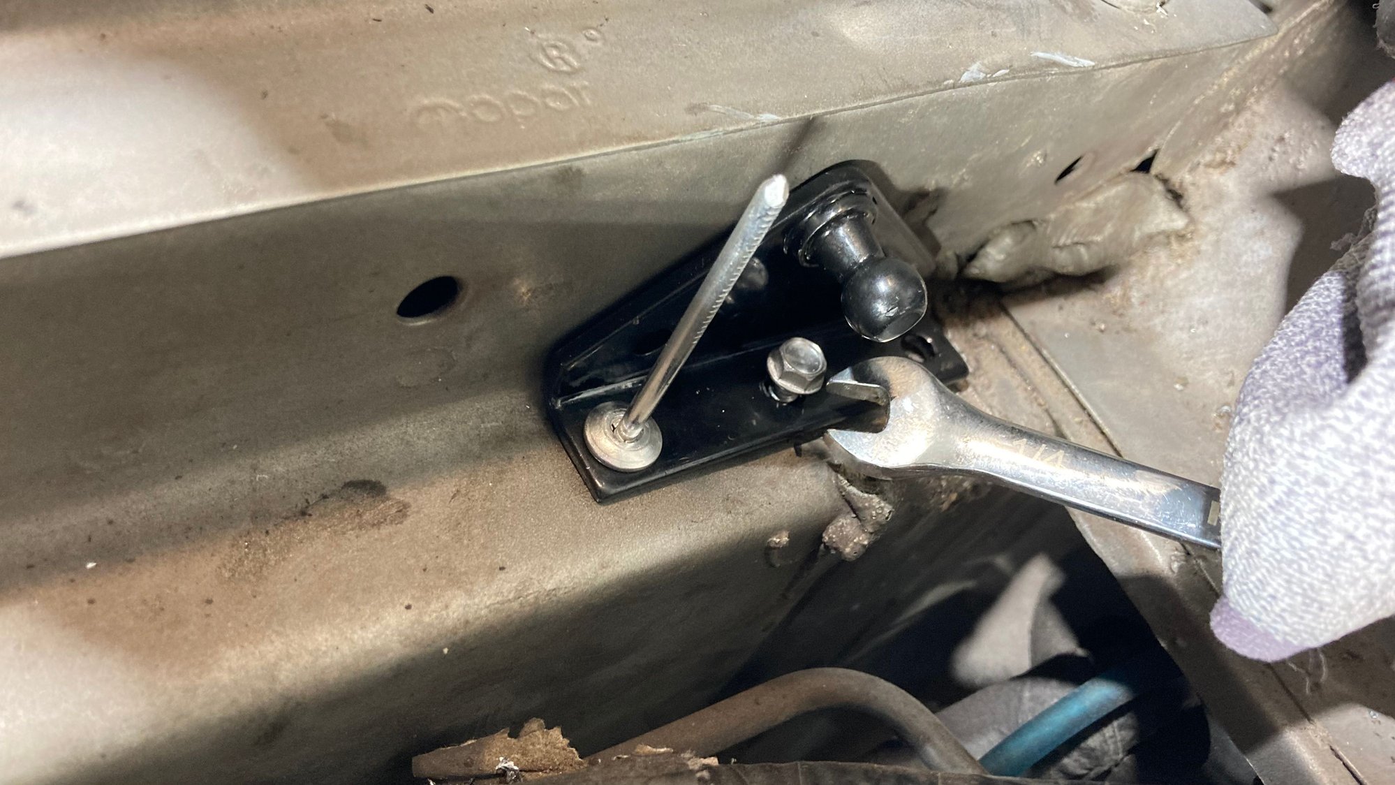 Remove the manual hood prop as it will be in the way of the new passenger side gas strut.