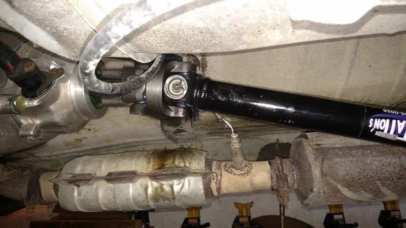I decided to upgrade to a beefier driveshaft, a custom made Tattons. Very nice looking shaft, definitely stronger than the stock front shaft. Put it on and it was very noisy. Pulled it back off and could feel a catch in the double carden joint. Tried to adjust the u-joints but couldn't get rid of the vibes/noise. So I called up Tattons and sent it back to them. Got it back and the DC joint is very smooth, but naturally tighter than the worn front shaft I was using. I assumed I was golden.