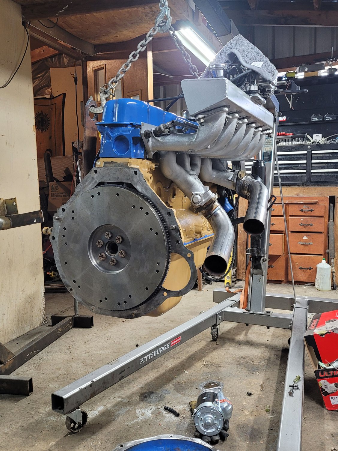 Lots to do still. Drop in truck fab throttle cable bracket. Break cam in then fab exhaust. Itl get a spintech dual 2.5 in 3" or maybe leave it as pictured.