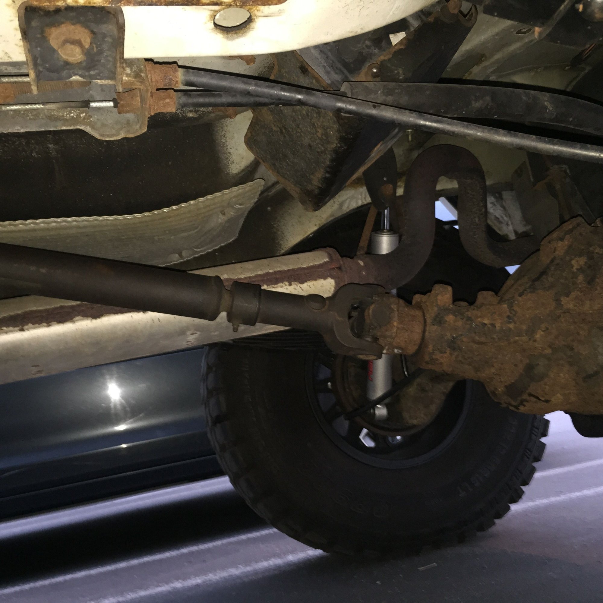 Did you actually measure the length when you cut the part off the T case, or just guessed and cut? Me and my buddy both have front drive shafts in the rear, with IRO hack and tap and had to both cut way different amounts off.