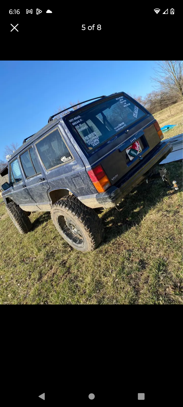 As for the jeep honestly don't know a whole lot about it I'm gonna talk with him tomorrow some more and gets pics of the unibody. It's a 96 (score) with 160k original miles while is already a bonus and is listed for $3600. He said the only things wrong with it are the Trac bar bushings so it has death wobble and it needs headlights which he has. He used wheeling clearly but everything from the pics I've seen have been pretty solid. Has dents in the body but nothing crazy and not that I care anyways. Has brand new 35s which is probably where a good chunk of the price is