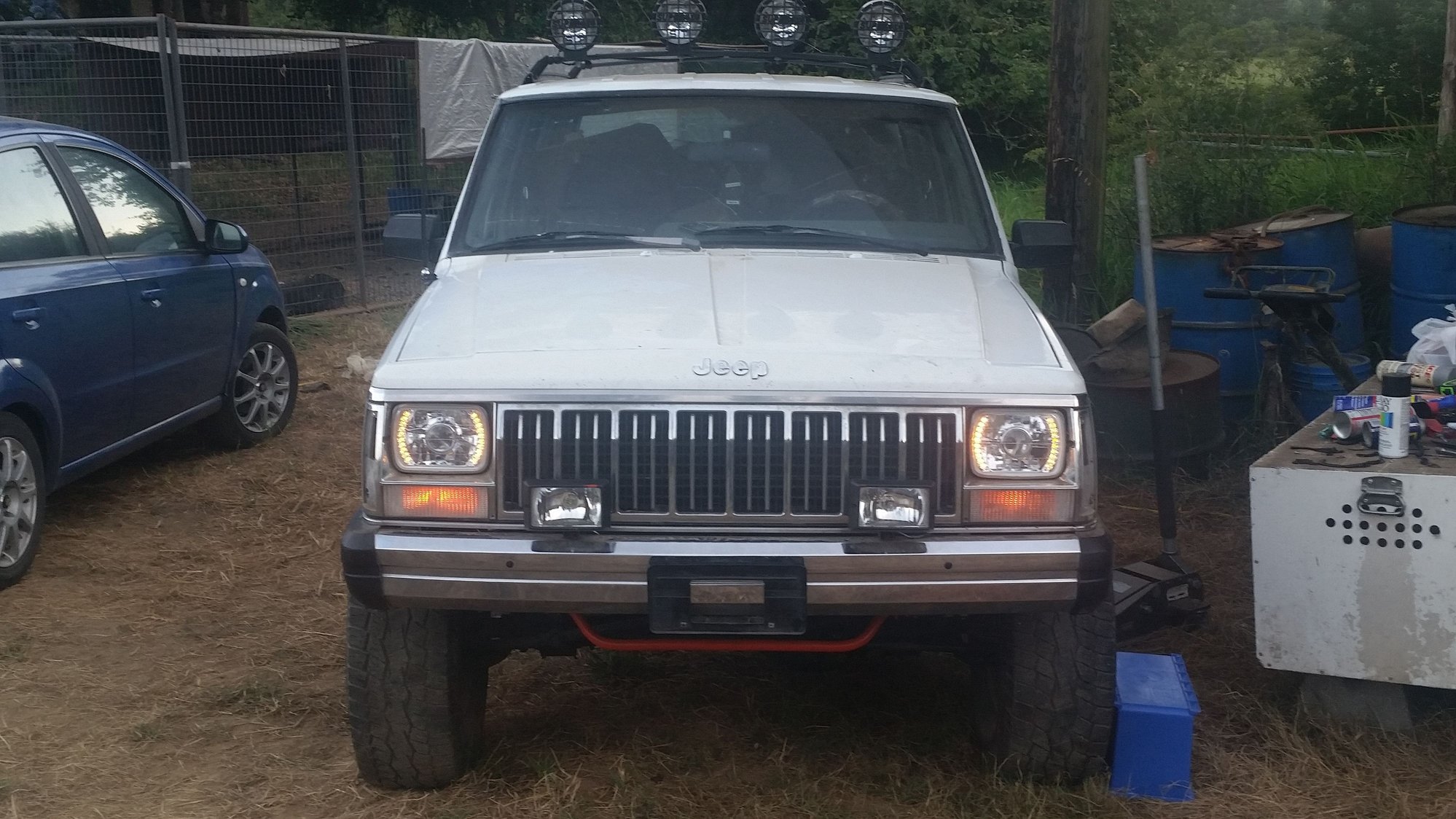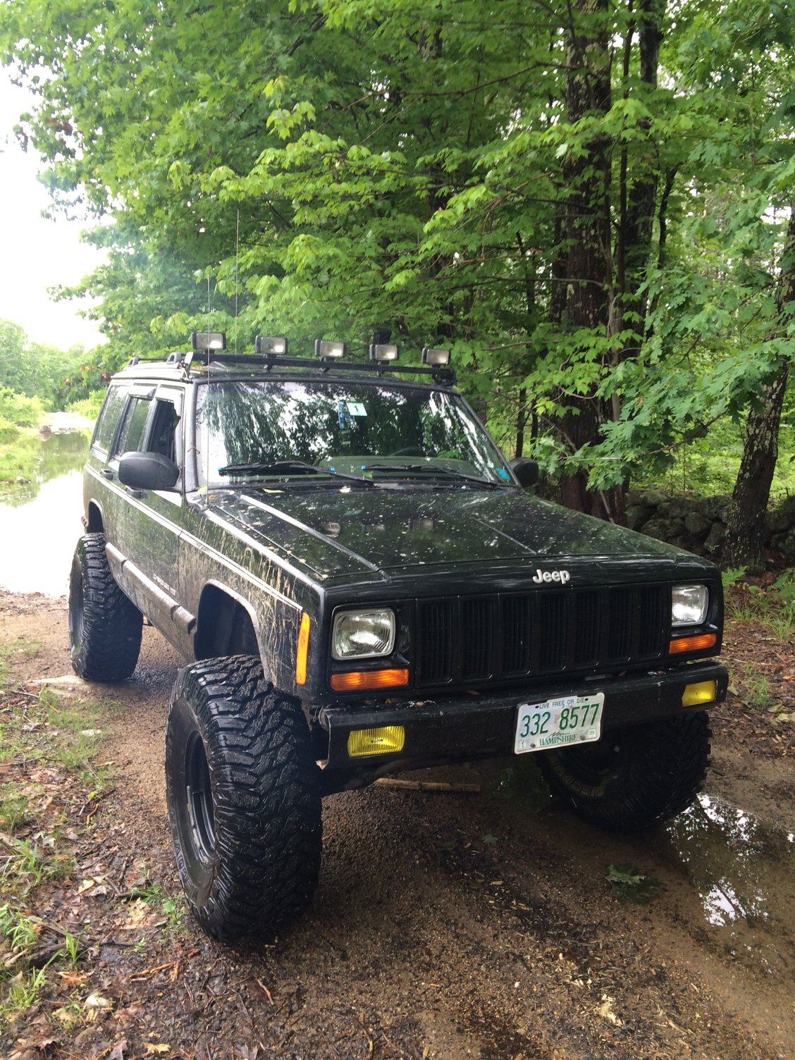 Jeep Cherokee 3" lift 31s and 4 6" offroad lights.
