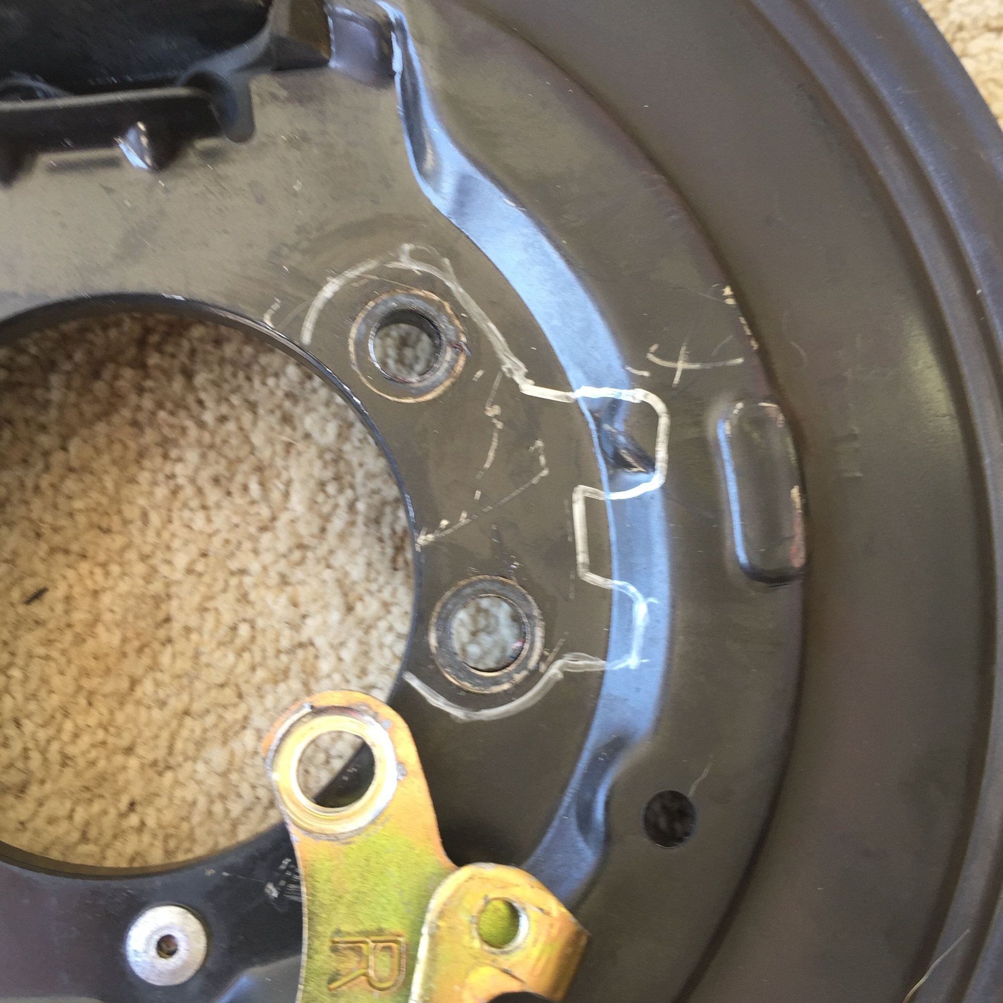 Next the backing plate was flattened for the sensor bracket.