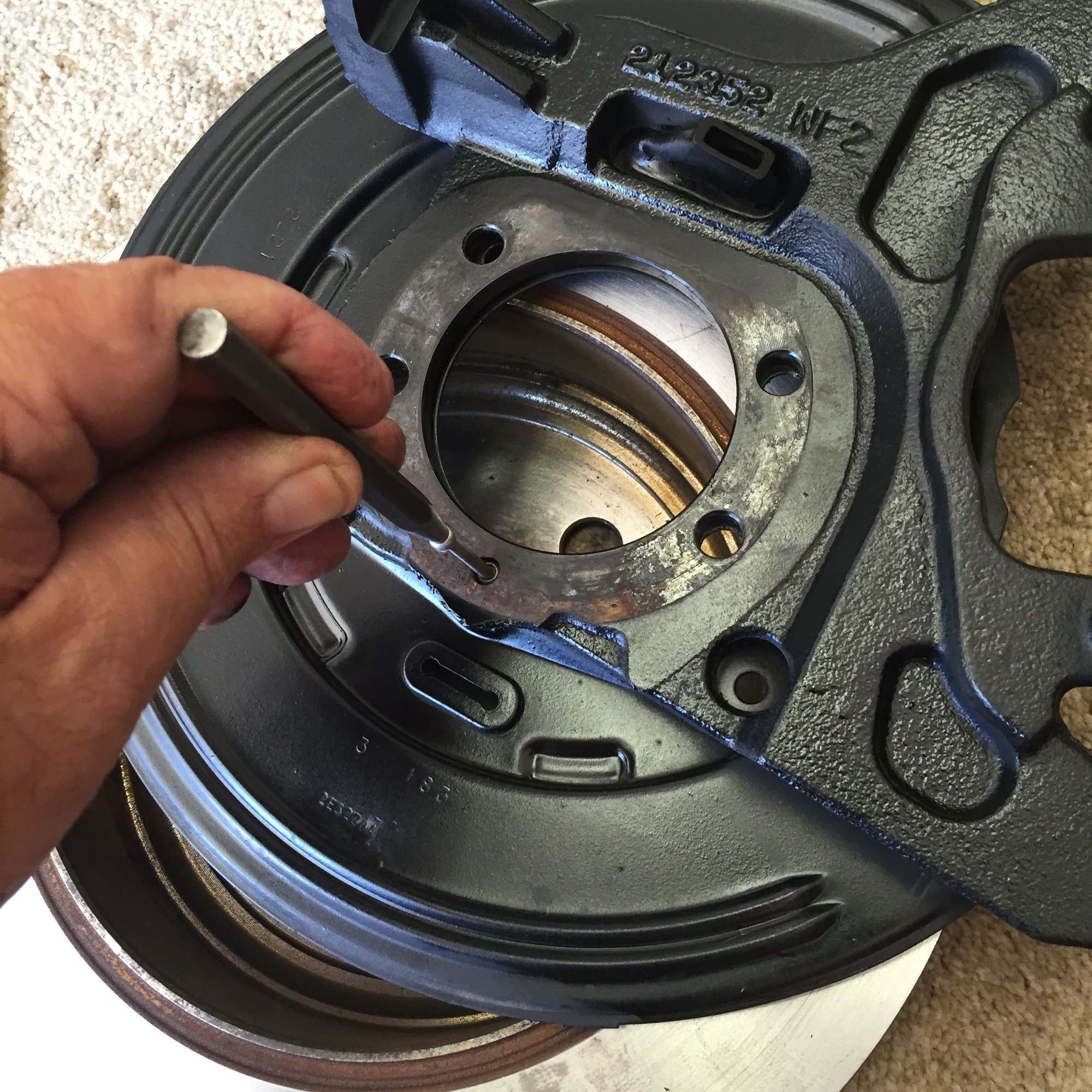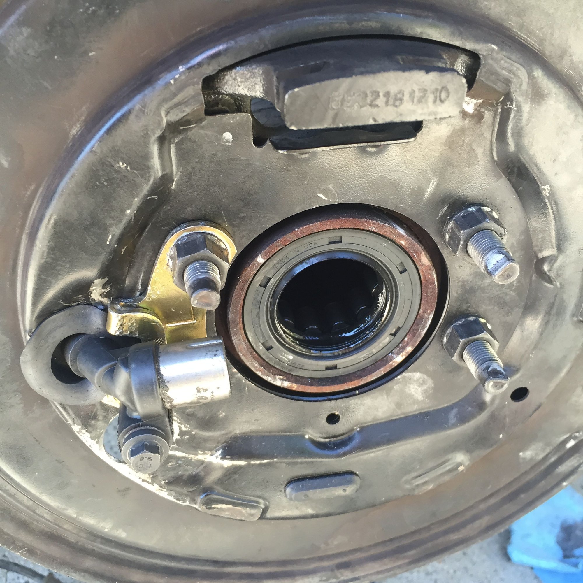 The hole for the sensor cable is right where the brake shoe seat is located.