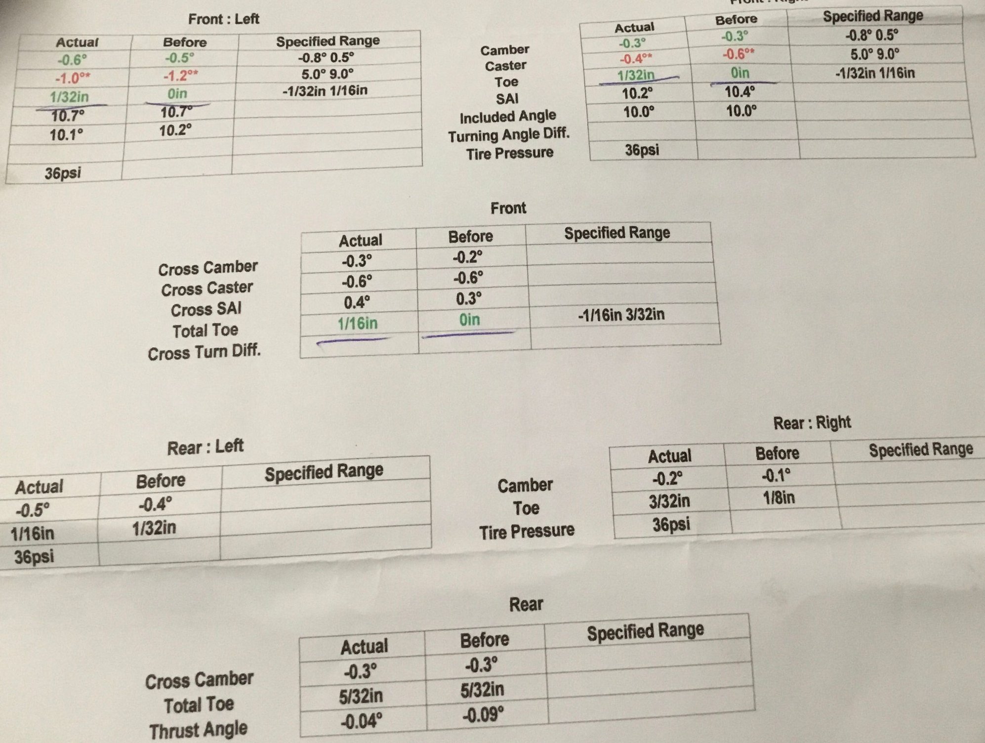 But seriously, as Corky mentioned above, most shops that are just doing basic alignments either don't know how to do much other than adjust the toe or just assume you want it to factory settings. Some places will work with you if you tell them what you need (don't just tell them, write it down and give it to them) and sometimes you need to do a little handholding. I've had places that let me help them in the shop, but that's rare. I deal with this all the time when setting up my track car to non-factory specs, so I feel your pain.