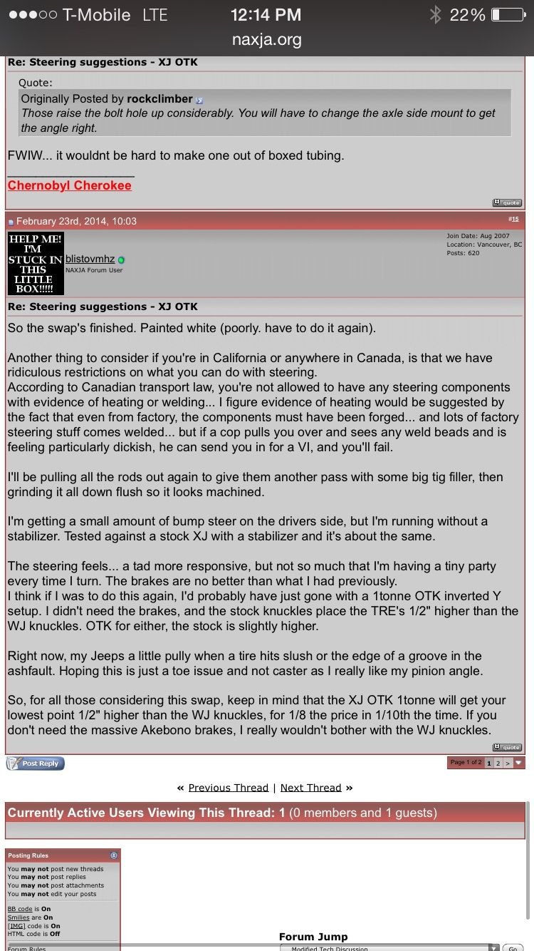 Alright, I think I've made up my mind as far as the WJ knuckles. I'm opting to not take that project on and mainly because of someone's post over at NAXJA. Screenshot attached.