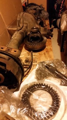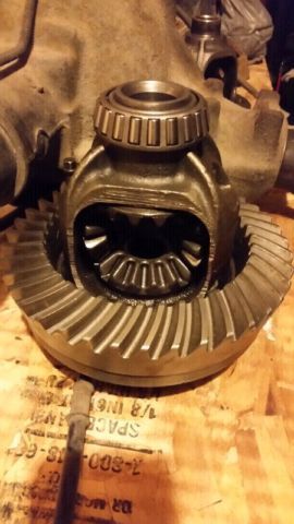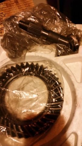 The ring in the plastic bag and the pinion next to it is a reverse-cut/high pinion D30; you can tell because the teeth flow counter-clockwise and the pinion is straight (non-tapered). The gear on the carrier in the back looks to be the same size, so I'm guessing it's a low-pinion set as the teeth are flowing the opposite direction and it doesn't look like an 8.25 carrier, but it's tough to be certain because I can't see the detail in such a small pic.