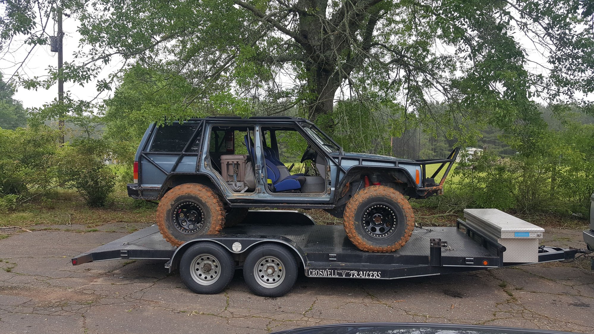 I'm running a 98 xj with a 6" short arm kit and leafs in the rear the front has plenty of wheel gap but my rear...not so much I'm running 37s would really like to go bigger some day but not gonna happen with my rear set up...what do yall guys recommend taller springs and shocks to match and more leafs or a block and shocks to match in the rear? Here is a pic of it on the trailer (straps are on axles so she sits just like this on level ground)