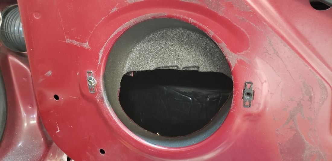 Some speakers, such as the speaker on the left in the photo in my previous post, will fit in the opening, but will require drilling new holes and using panel screw clips.