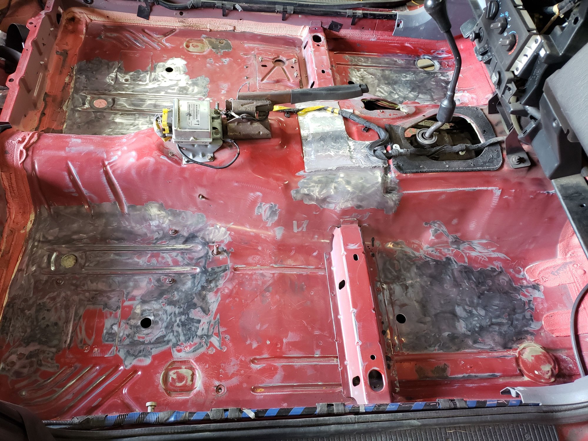 Started gutting the interior last night. Not bad. Floor is surprisingly clean Only surface rust ive already started to grind away Also should be able to get new door pins back in.