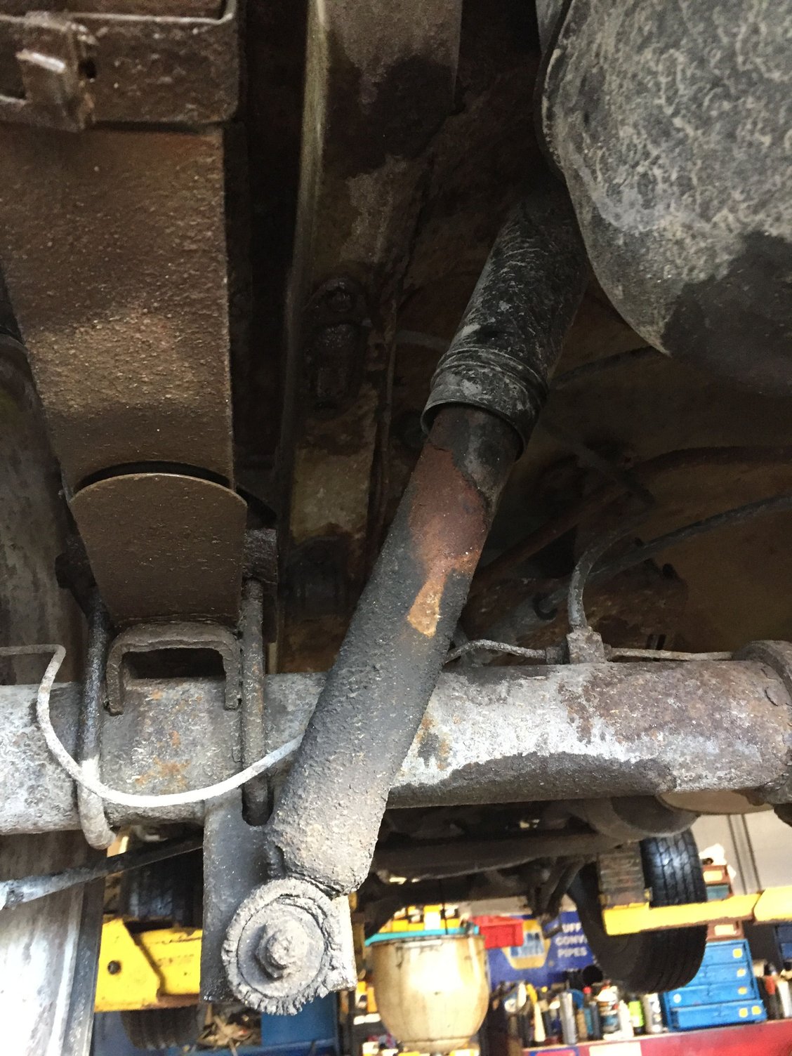 Rotated rear axle to correct pinion angle (corrected when I welded new perches on the axle)