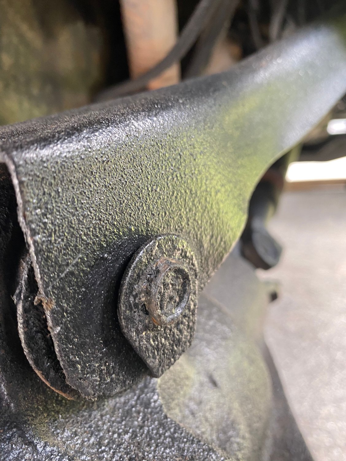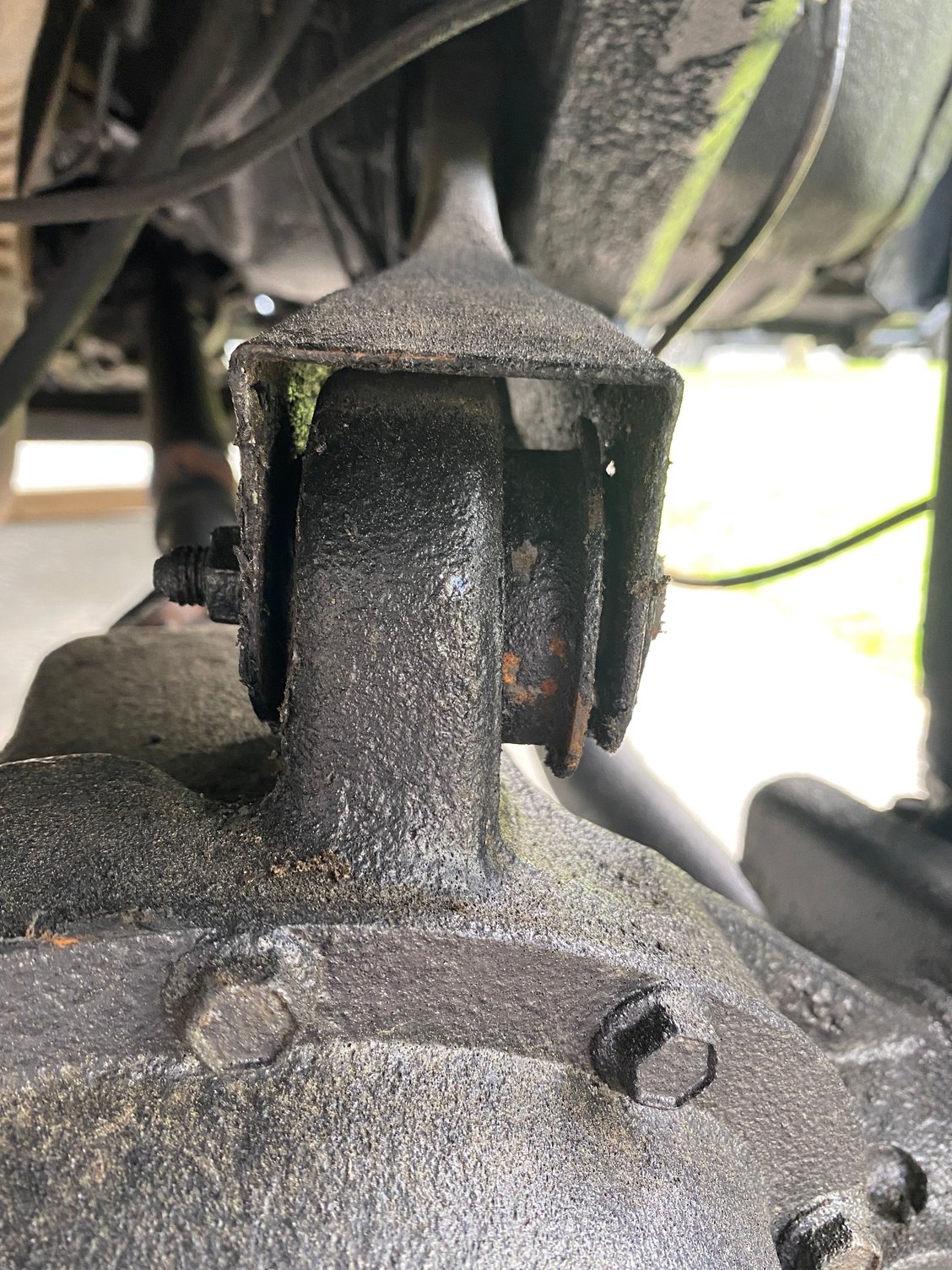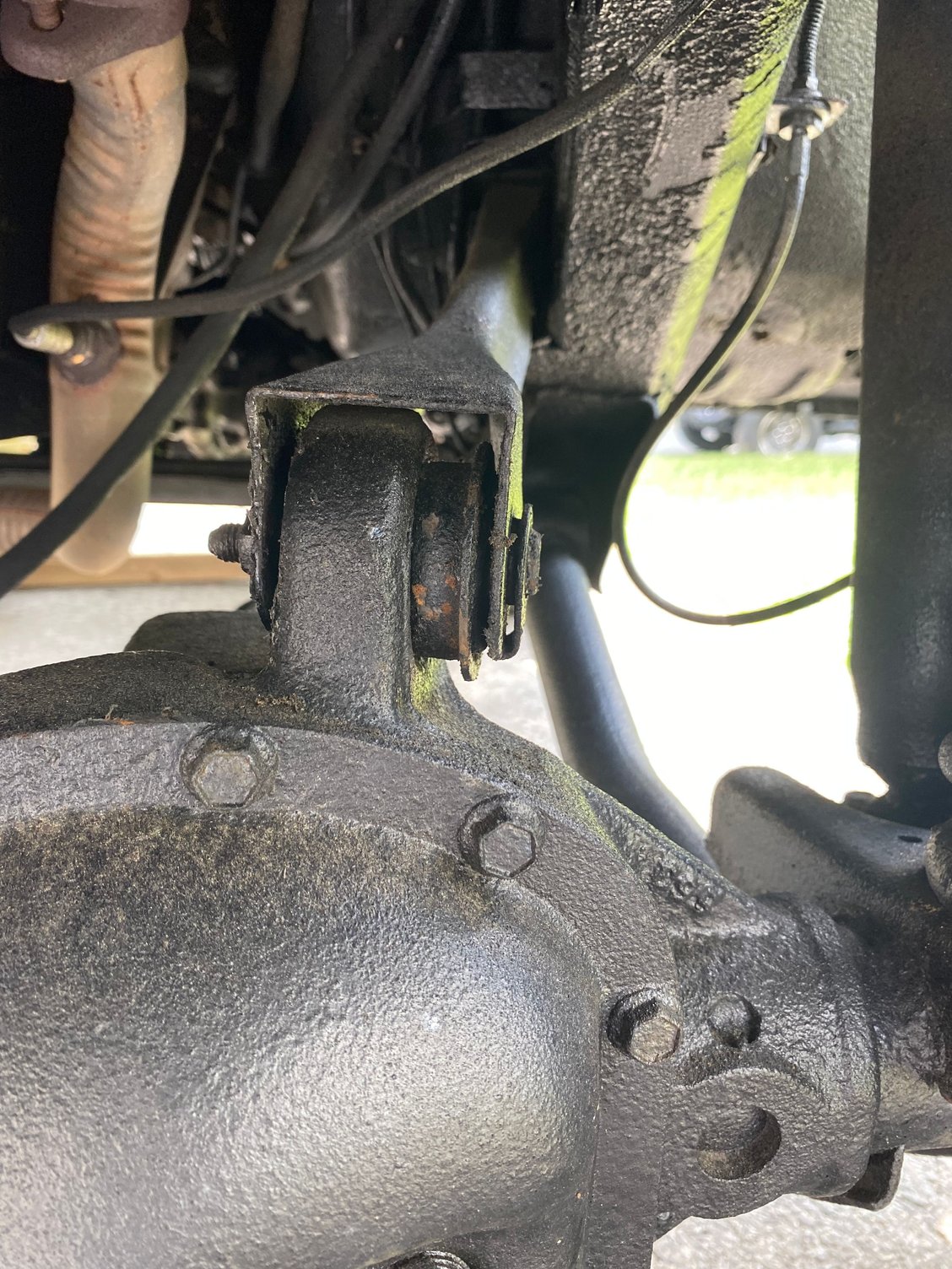So I found part ff the problem... Trac bar bushings are toast!! There's also a slight wobble of three bolts in the bracket holes... How do I fix that? If I enlarge the holes for a bigger bolt it won't fit in the bushing spacer hole? Maybe they sell bushings with enlarged hardware?