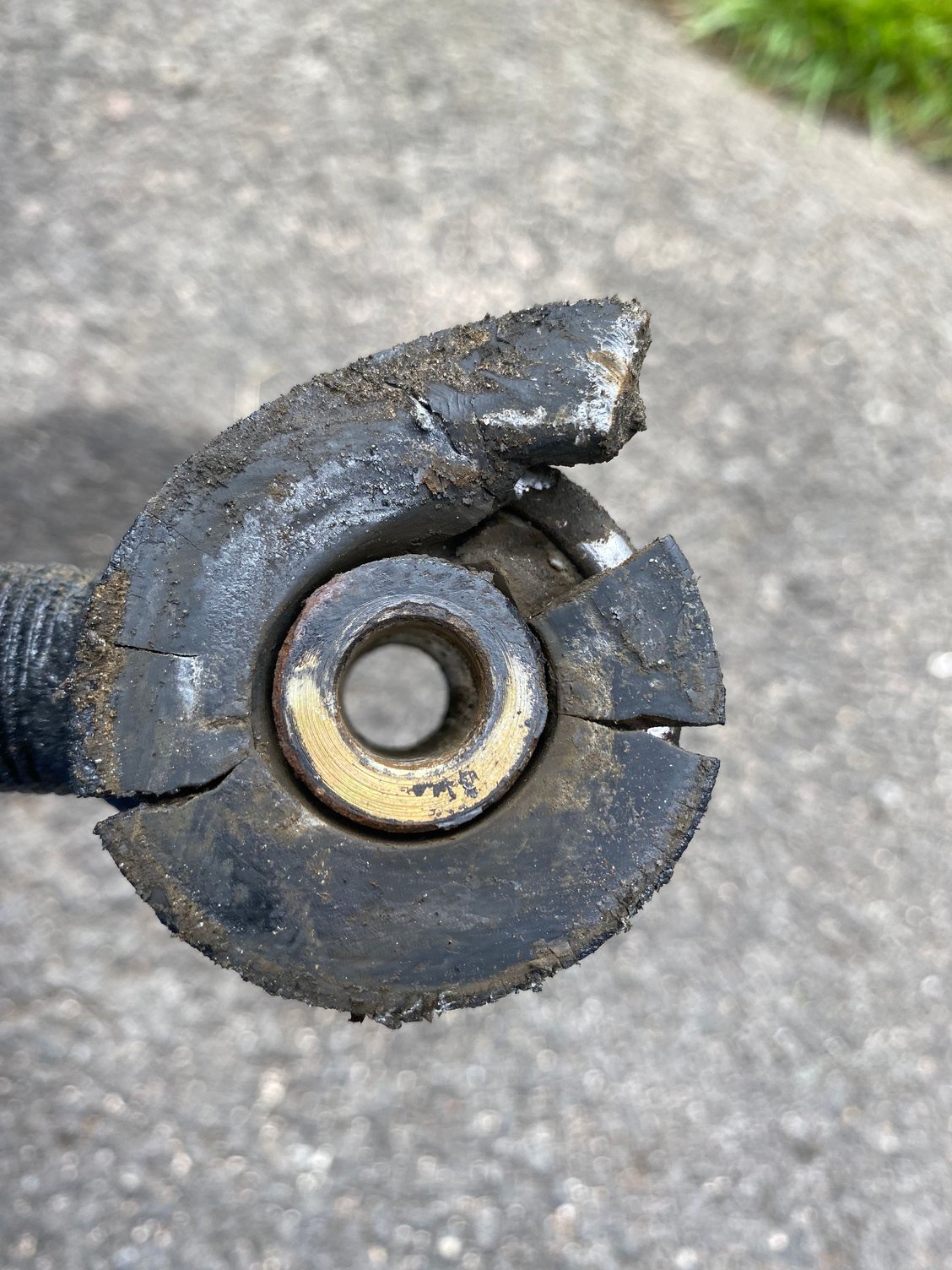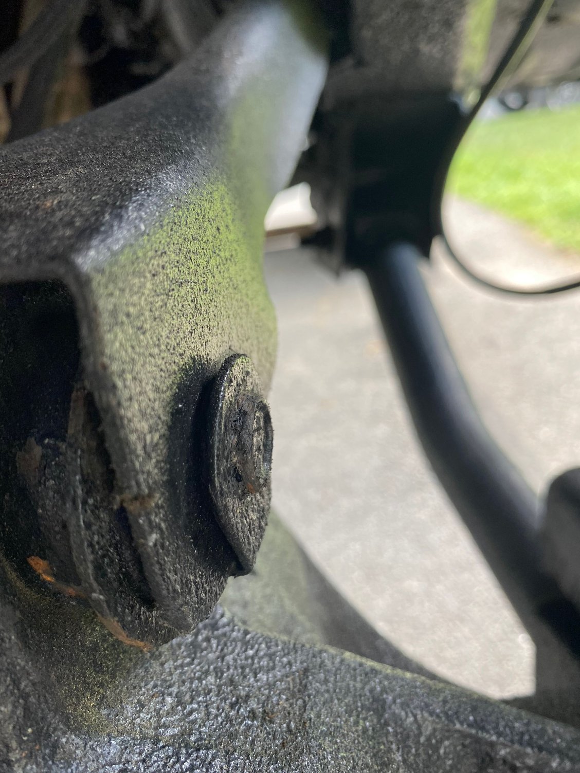 Also... I'm guessing the bushing on top of the axle is bad too? How do I remove this freakin thing? There's no bolt head to grab onto?
