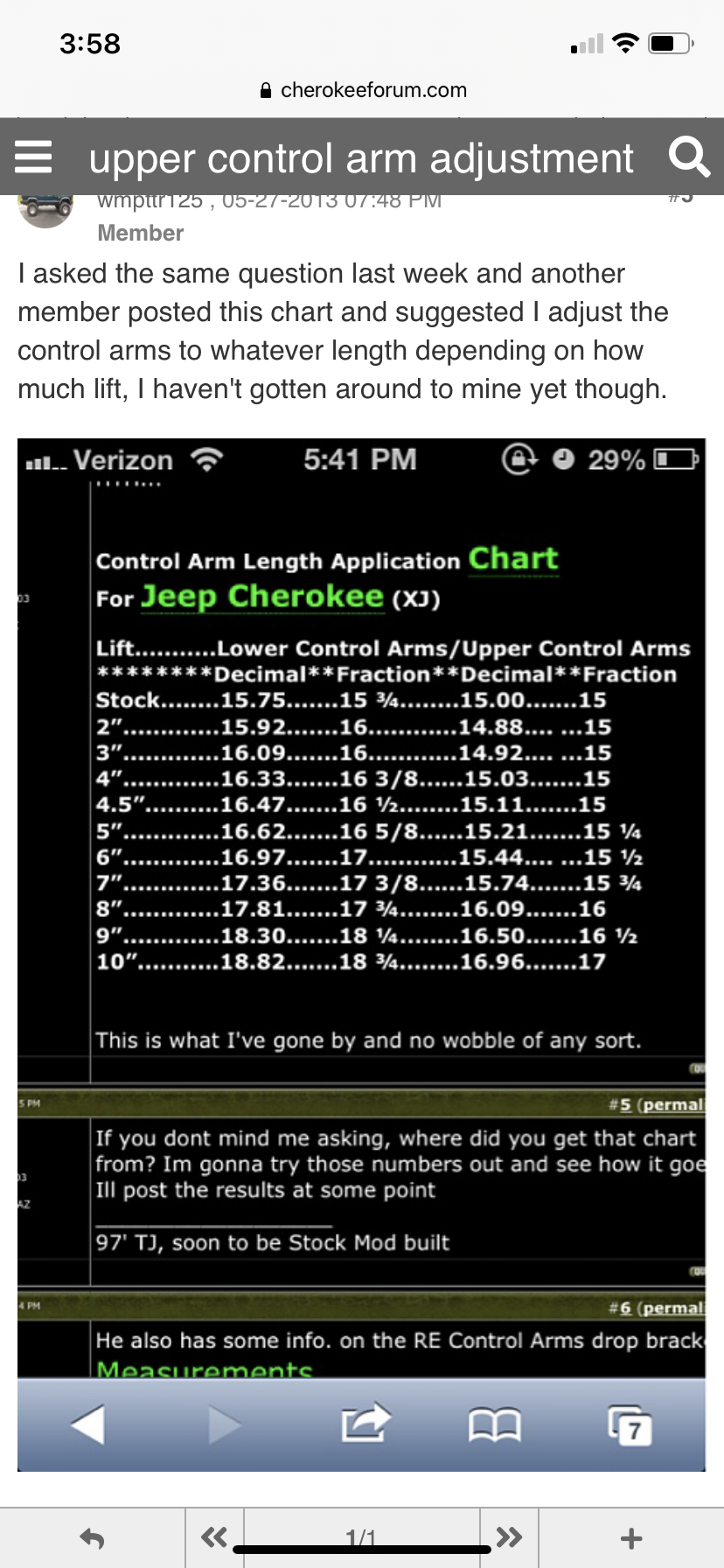 I drilled the original holes out to 1/2" and used this chart I found on here while doing some searching on how long to set the upper control arms. I set to roughly 15 1/4" but the driver's I had to lengthen a few turns after it's initial measurement cause I was way off on the axle bracket over the pumpkin. It was short about 4 turns. It's on there now but I'm not too sure how to know if it's adjusted correctly or not?
