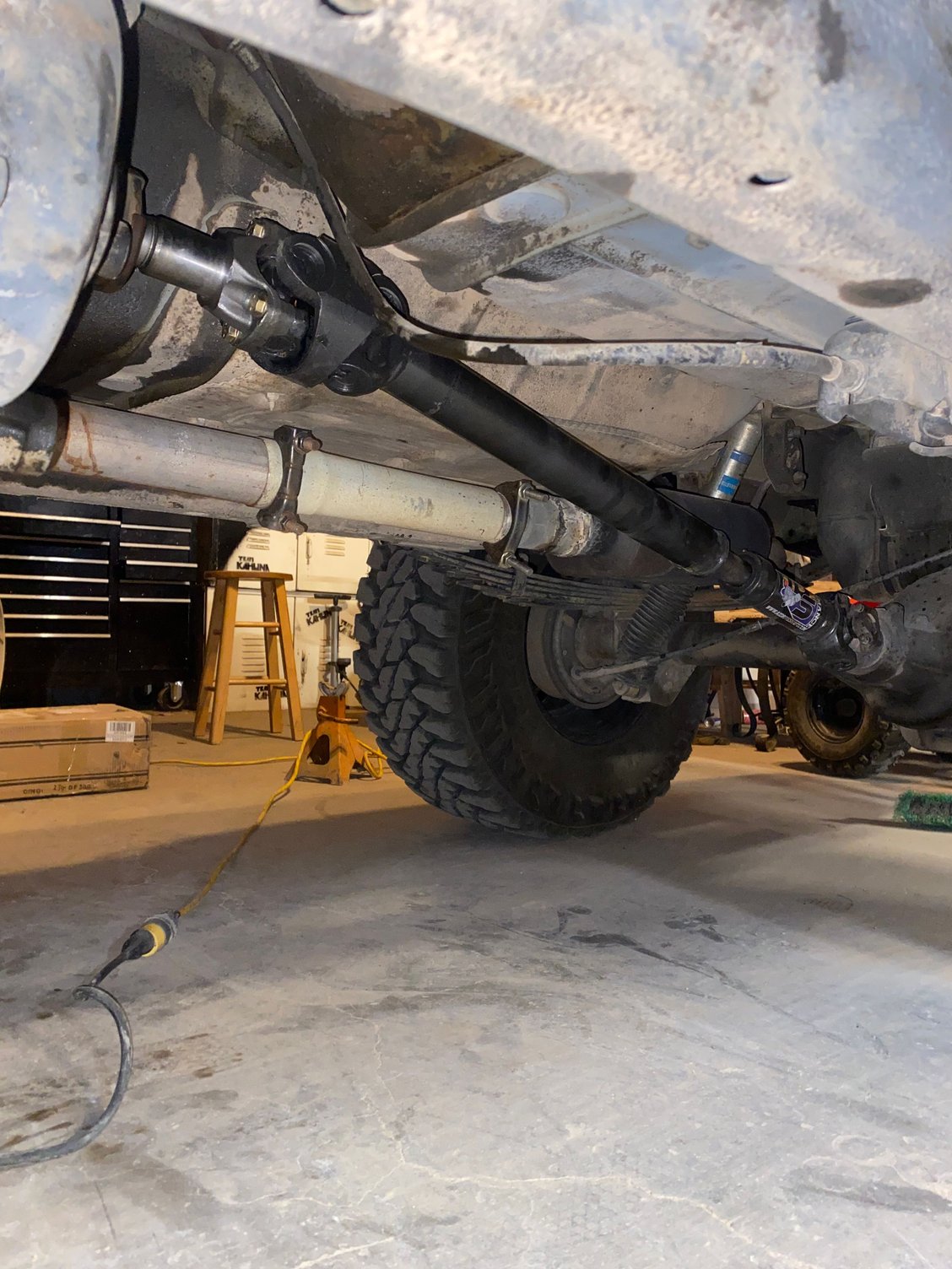 I took out the front shaft (mind you this was a stock drive shaft from 2000 and it’s been beat to hell) and no more noises after driving aggressively. I think the issues was that when I took the drop out it messed the front shaft angles and that’s what was causing noise. When I look at it just moving it with my hand it was making noises and didn’t feel like the new one I installed. The front axle is also off a 97xj bc I broke mine a while back so I went from a low pinion to a high pinion and got the front shaft cut.