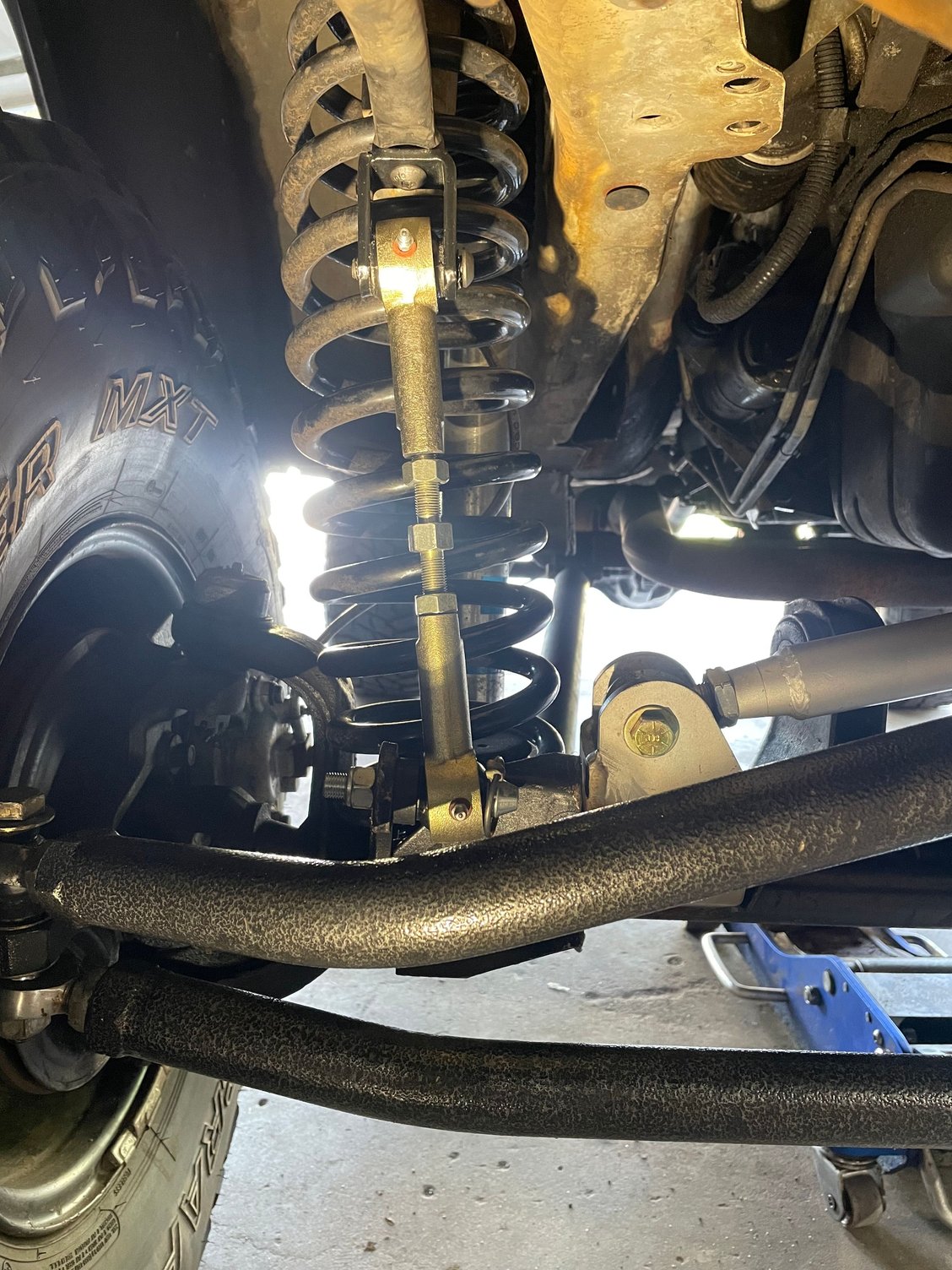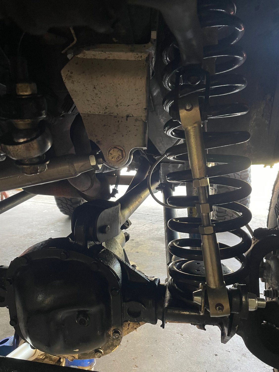 Hey guys I really need some help as I been going in circles trying to get my steering/track bar squared away. I took it to 3 different shops and they all have a hard time. I put a bolt on 3 link, ota track bar, and crossover steering. I’ve honestly tried a bunch of YouTube and forums and still can’t seem to figure out what the problem is. So I took it to get alignment and had the 3 link adjusted. They all say the only thing they can’t do is get my steering wheel straight. Well after getting it back last night I came to the conclusion my axle was not centered I feel like it is now but after adding my sway bar links they are so crooked it’s making me doubt it is now. Not to mention it looks like my driver side spring wants to rub on the inside . After I centered my axle it looks like I have more adjustment on my drag link . I haven’t messed with it in case I mess more things up . Oh btw I have about an 8” lift on it .