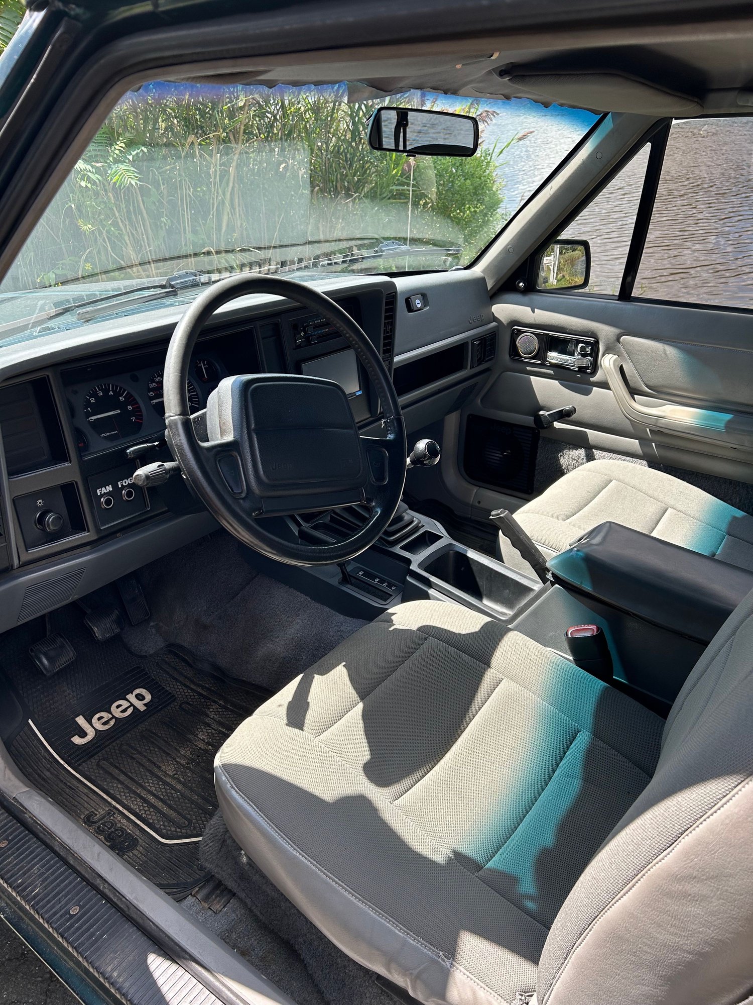 1995 Jeep Cherokee 4.0, Green exterior, Gray interior, 4WD, 2 door, manual transmission, manual everything, green. My unicorn.