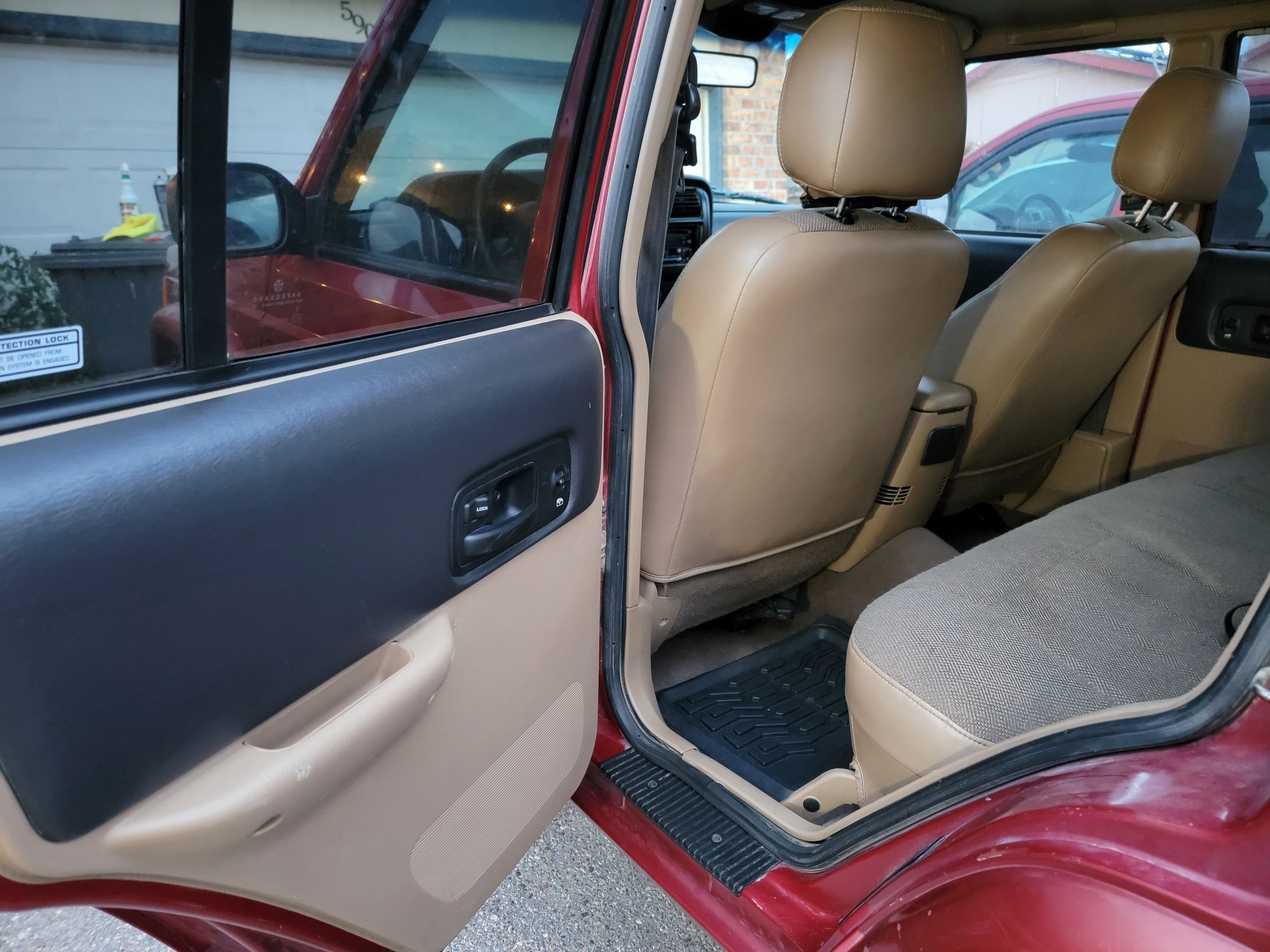 I'll start off with what it needs. It's got some of the typical leaks coming from the valve, tranny pan I believe (it's wet near where the tranny and transfer case meet, along with being wet around the pan gasket). Slight power steering leak as well. It has some exhaust leaks and runs a little rich with when driving. I'm going to replaced the O2's, but it sounds like it has a leak at the exhaust manifold, so that could be contributing the the O2 issue and rich running condition. I recommend that whoever buys it, that they replaced the manifold before taking it on any long trips, as the rich running causes some drivability issues after awhile, not to mention the terrible fuel mileage with it running rich. The right rear window doesn't roll down, as there is no window motor in place ( it had gone bad and was removed before I purchased it). The drivers window switch has issues with rolling down the passenger window (I know ya'll have run into this before and know how to fix it). The drivers side rear door latch sticks and is a little difficult to open form the outside. I've remedied this in the past by cleaning out the latch mechanism and lubing it. The side of the drivers seat vinyl is cracking/peeling. Other seats are in good shape. Nothing a little shampooing wouldn't take care of.