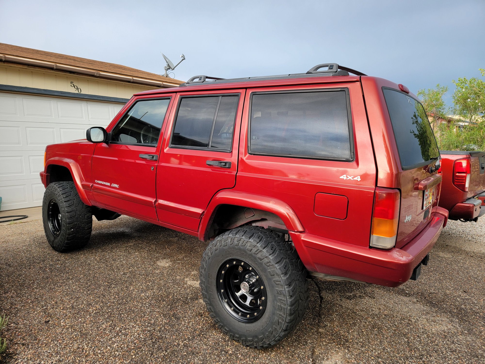I purchased the Cherokee with a Rough Country 4" kit with the Add-a-leaf already installed on it from the previous along the wheels and the tires that are on it, also installed by the previous owner. I have not done anything the suspension, wheels or tires since I purchased it several years back.