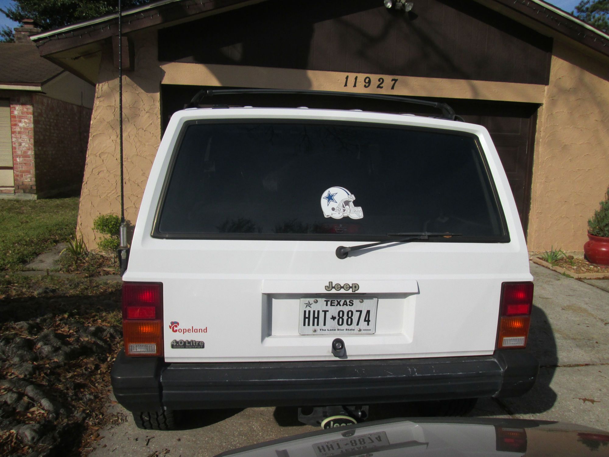 Houston, Tx. 2 in. lift with Old Man Emu front springs, Rough Country shocks, Husky floor liners, Aluminum radiator, Pioneer CD player, White face gauges with Equus water temp gauge, Hood vent, Hella driving lights, CB antenna, Rear hatch struts replaced, Thrush welded muffler, K&N filter, Solid diff cover, Class III bar hitch, New Cooper 30 in. A/T tires on American racing wheels.