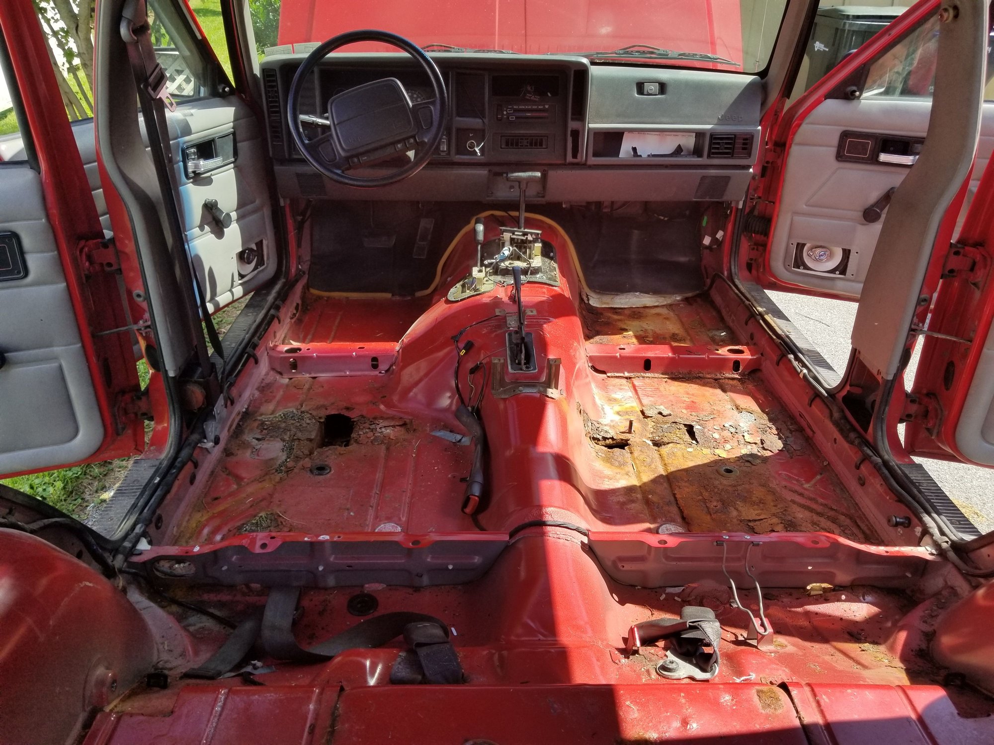96 Cherokee for sale/part out. This was my daily driver and only vehicle for nearly ten years, until it failed inspection in April 2016 due to rust. Engine is the 4.0L straight-6 and runs great, transmission is smooth, both are original as is the rest of the drivetrain. 4-wheel drive system works flawlessly as well. It had regular oil changes while I owned it and never needed any major repairs. I do still have all of the interior, it was removed to see how bad the rust was when I was still deciding if I wanted to repair it or not. The interior is gray, seats are fabric and in fair condition. Also comes with a spare tire/wheel, not pictured. Tires have about 3/4 tread left on them. Located in Mount Holly Springs PA zip code 17065. Contact me with questions or offers.