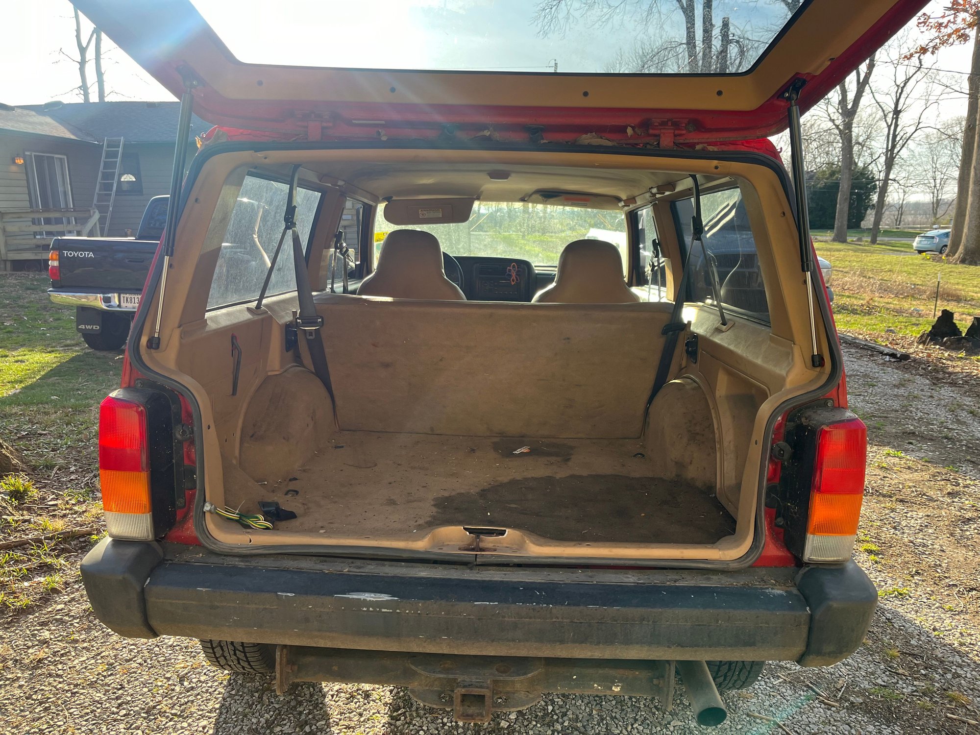 the cylinder head has never been off the jeep and the engine/trans/transfer case have never been removed. every 5k miles t6 rotella & wix 51515. all glass is good, headliner is good. never wrecked, no water leaks in cabin, hatch works. has trailer hitch with wiring for small trailer. all lights & turn signals etc work.