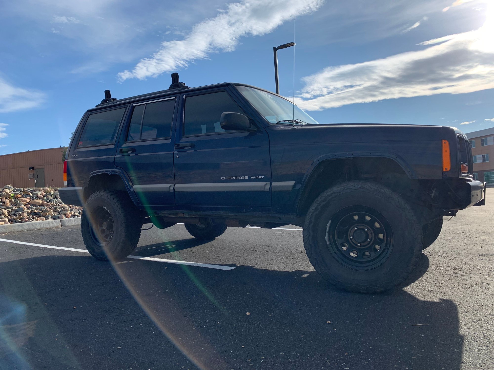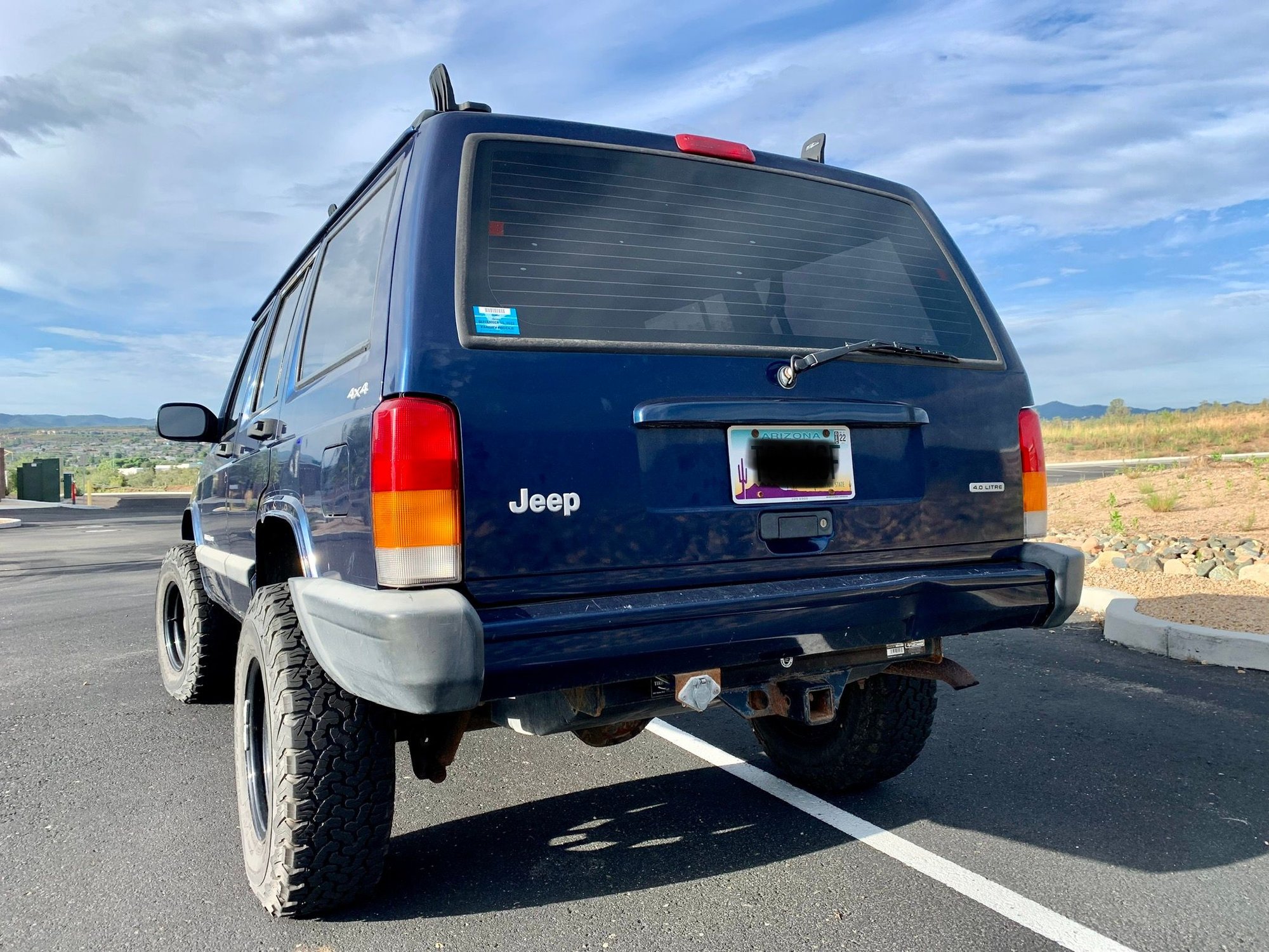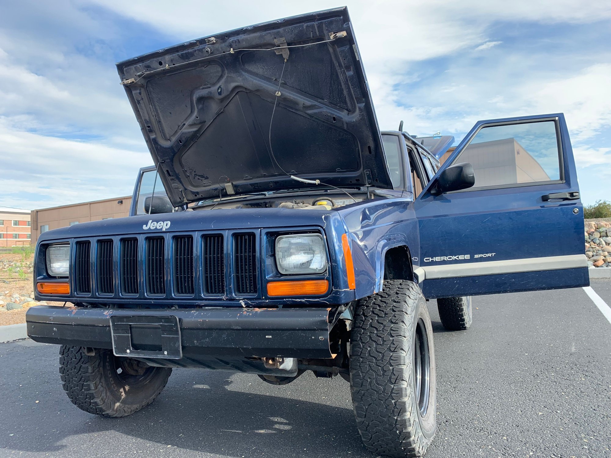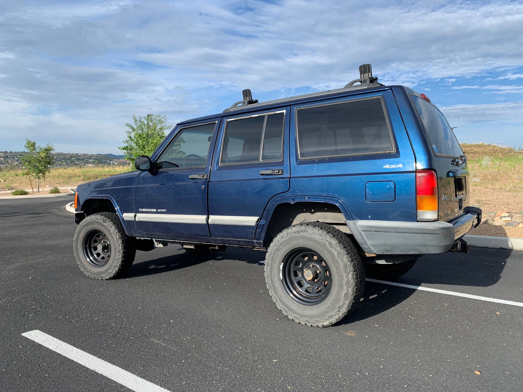 We are selling our ‘01 Jeep Cherokee 4x4 XJ Sport. We are the second owners and have had this XJ since 2016. The only upgrades we’ve done since owning it are tires and wheels. Previous owners had it set up with a mediocre 3” lift, factory installed rear & front tow hitch/receivers for flat towing behind RV. Not much has been done to the Jeep since owning it other than it’s routine oil changes and occasional maintenance.