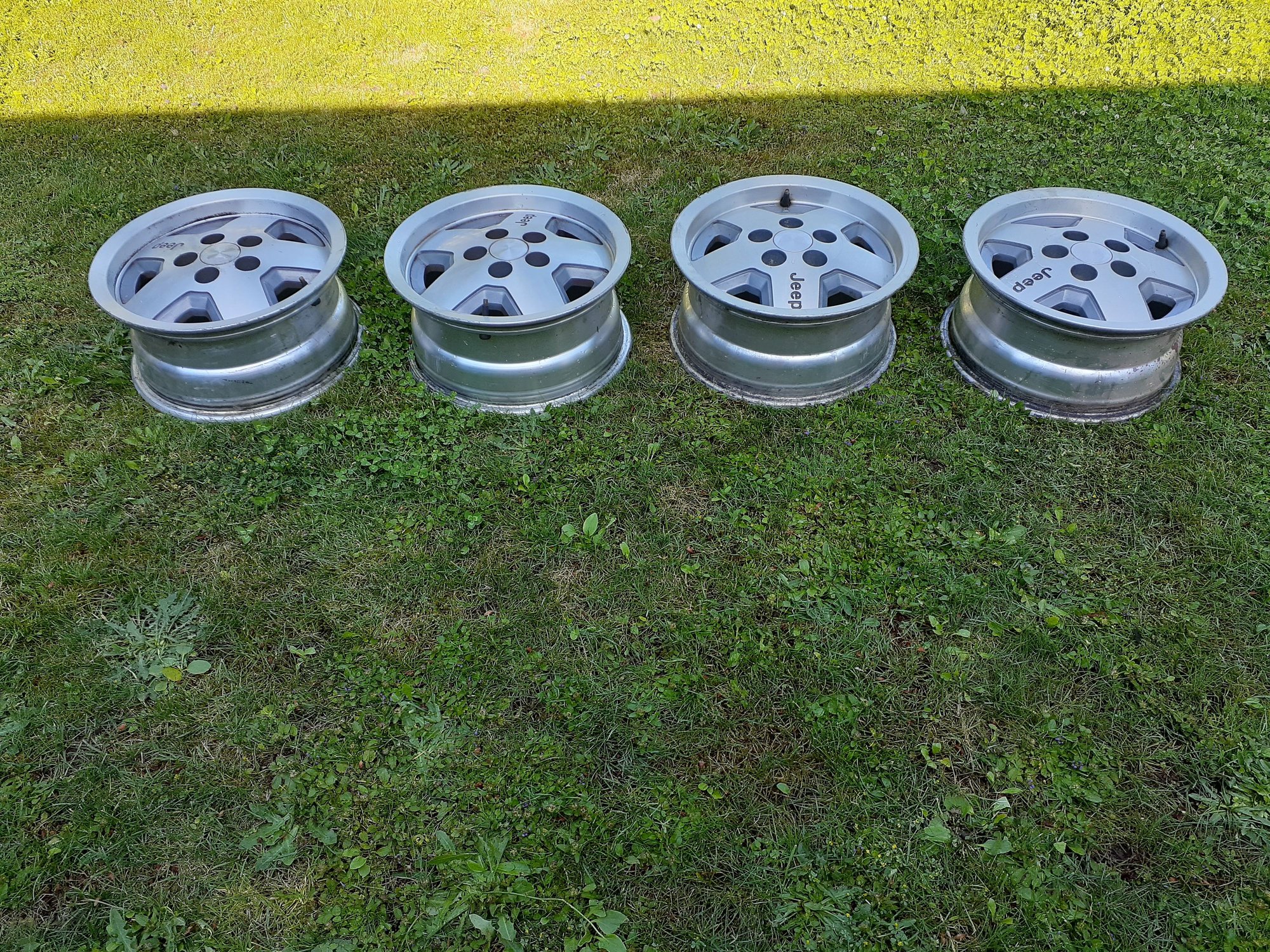 (4) 15x7 Oem aluminum Cherokee wheels. 5 on 4.5" lug pattern. They are in fair shape. Two of them have some curb rash (see pics). I have taken close up pictures of each wheel to show their condition. If you are interested send me a pm. Located in Bremerton Washington. $40 for all.