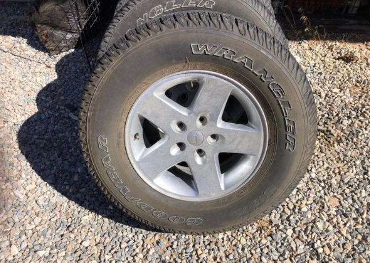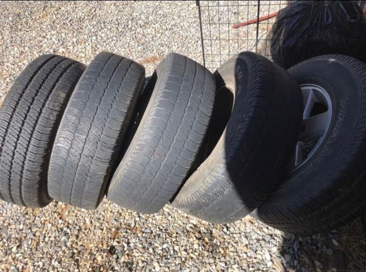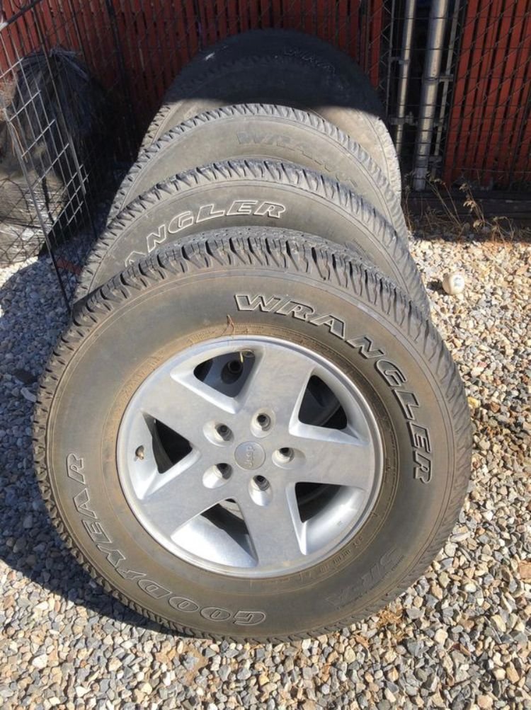 Used Jeep Wheels. 5x4.5 P225/75R17 2 - Good tires 2 - Bad tires 1 - Really Bad Tire. Asking 125. The 2 good tires alone are worth the money. Located in Apple Valley CA.