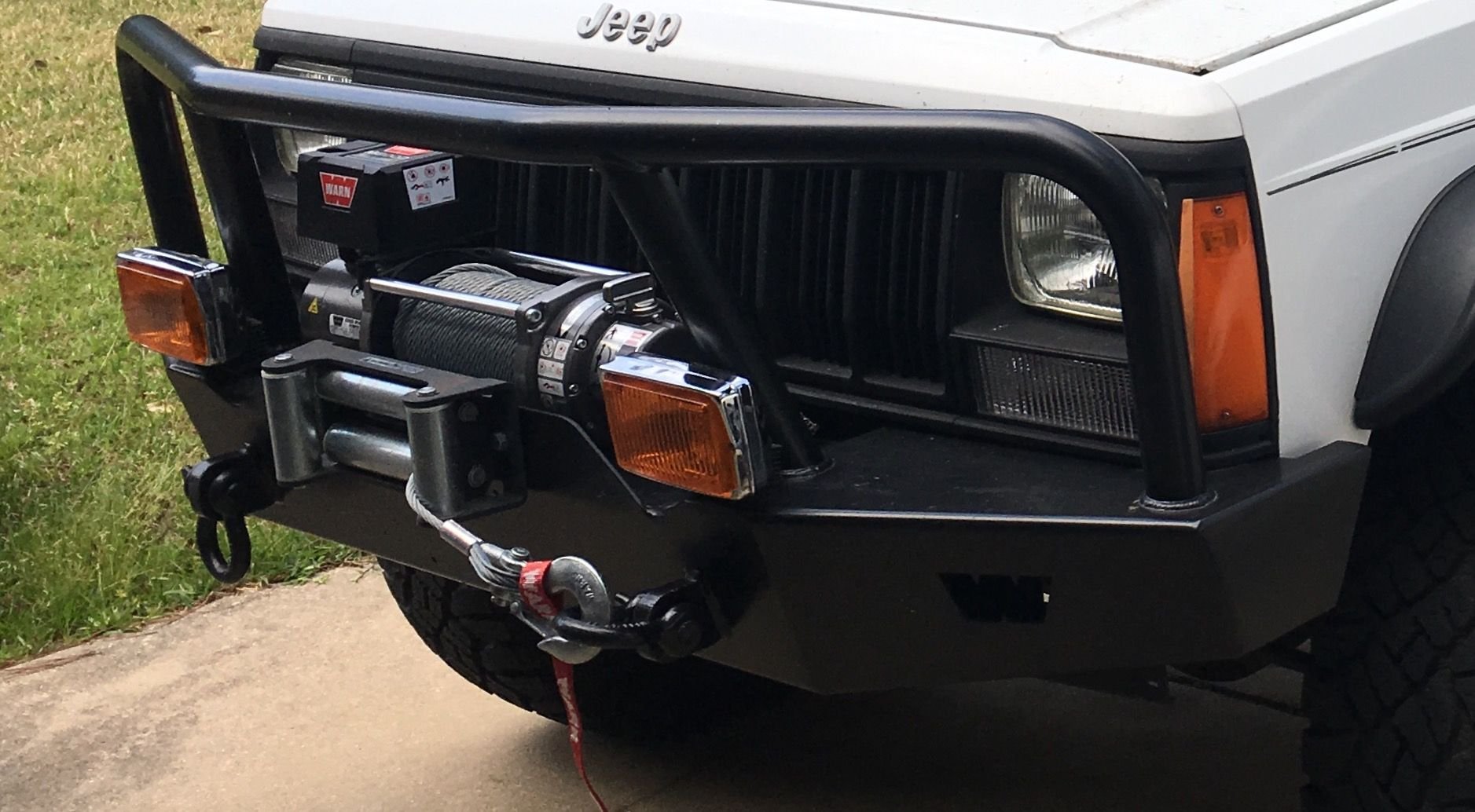Front and Rear Warn Bumper, fog lights and bike rack not included. Bumpers are in excellent shape. Rear bumper has a hitch receiver welded onto it. I bought them new. Will fit 84-2001 XJ Cherokee 2dr or 4dr.