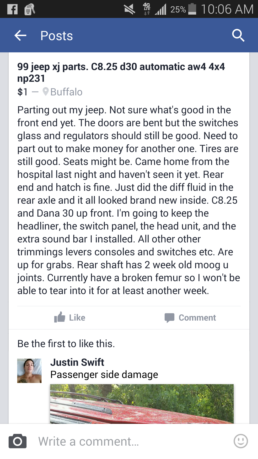 On July forth I crashed red into a tree. So now she goes for parts to fund the next build which I get delivered tomorrow. Make offers the worst I can say is no. Don't be afraid to ask. I will ship some things. If it doesn't fit in a flat rate box buyer pays shipping.