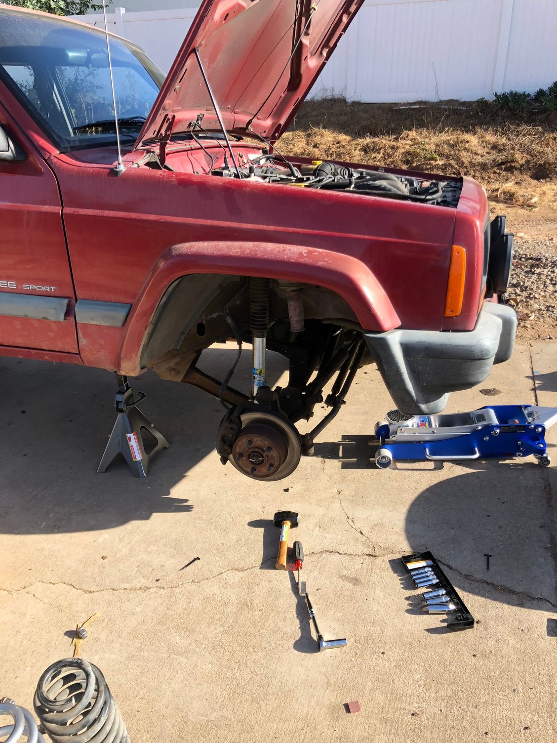 Previous owner installed A beefy track bar that hit on the differential cover, so I needed to lift the front of it so it would not contact anymore. I had just installed Rubicon express 3.5 inch springs upfront and it only took me around two hours with basic tools.