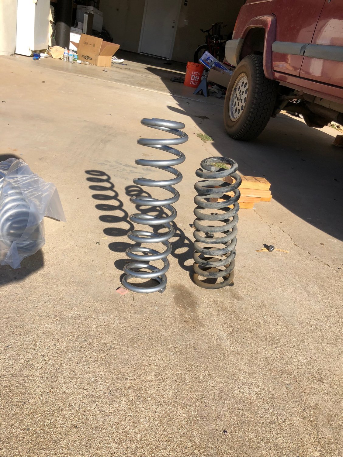 Heres pics from the install and how it sits now: LCA bolts removed to allow clearance for new springs Re-aligning LCA bolt holes Spring going in