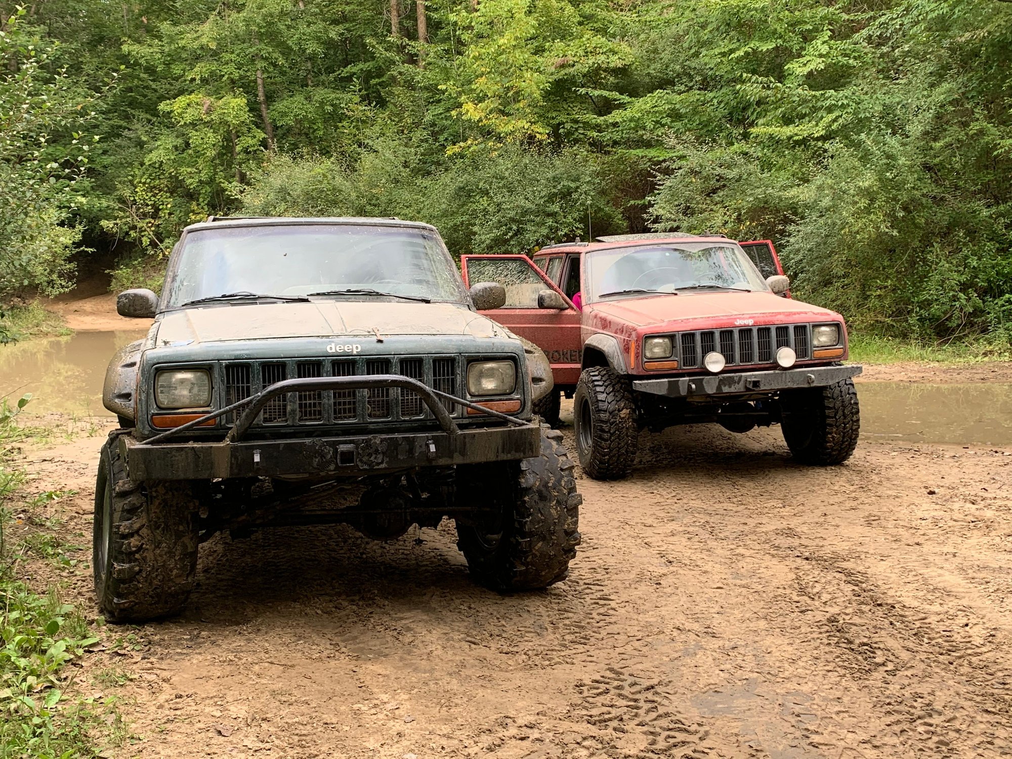 Hey all, been about 7 yrs since I was last on here or into xjs. My 1st was a red 99 with 4.5” of RE(pre pro comp) superflex lift with 35” BFG mud terrains. I also did a rear disk conversion. Well about 3 months ago I picked up green 99. This time it was someone else’s unfinished project. I paid 800 for it . It’s got 5” of bds short arm lift and 33x13.30 super swampers. I finished the motor swap and swapped the dash harness and both engine bay harness’ and welded the rear dif. I’m going to exo cage this one, long arms and a front spartan. Might go to 35”s also. The 13.50 super swampers work really well in the terrain I play in.