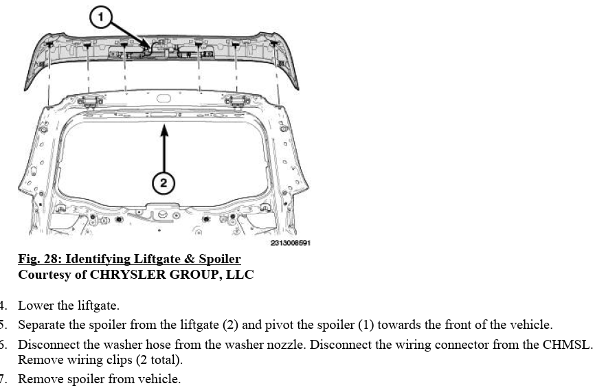 Hello, does anybody have instructions on how to remove the rear spoiler on the back door where the 3rd brake light is at.