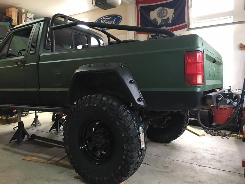 91 4.0 AX15 short bed with T-Bird coils and relocated Chevy drop shackle rear. ~3.5" up front and a solid 2" in the rear (leafs were in great shape) on 33 MT Baja