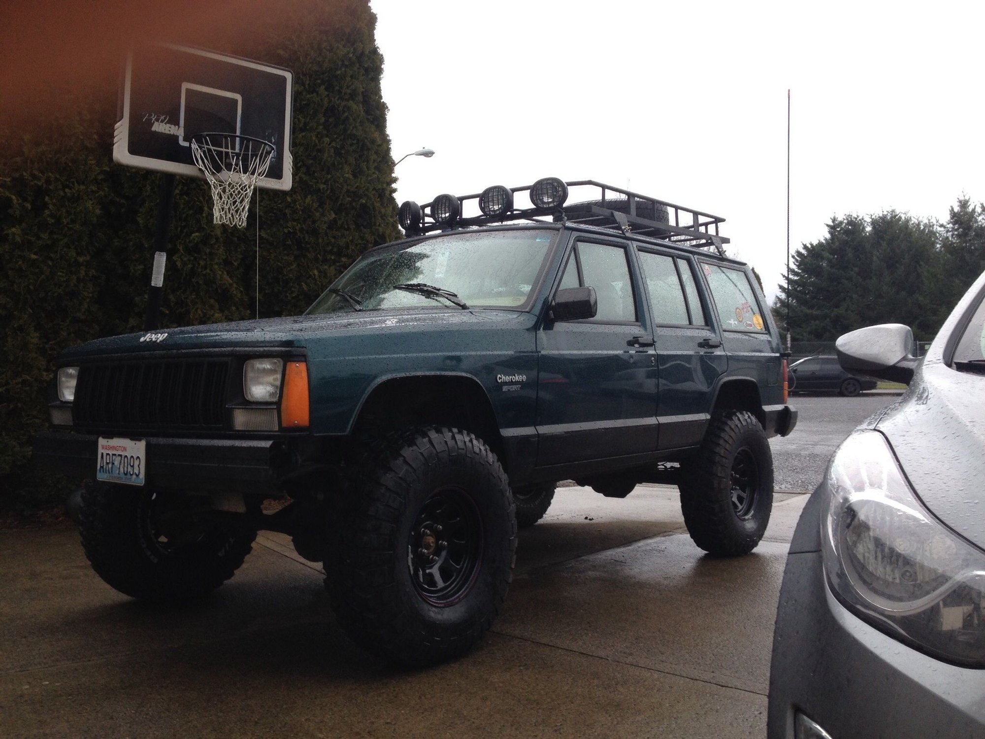 A little hard to see it, but I am now using a 4' Firefly with the same medium duty spring and mount but now with a quick release and RG59 connector instead of a stud mount. Lighter antenna that has lots of flexibility over the Firestik II. It sits high... maybe a little to high for most. It has encountered trees, birds and Del Taco drive thru signs and still holds strong.