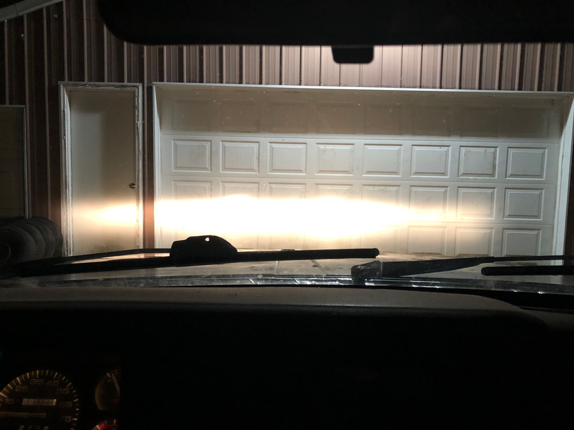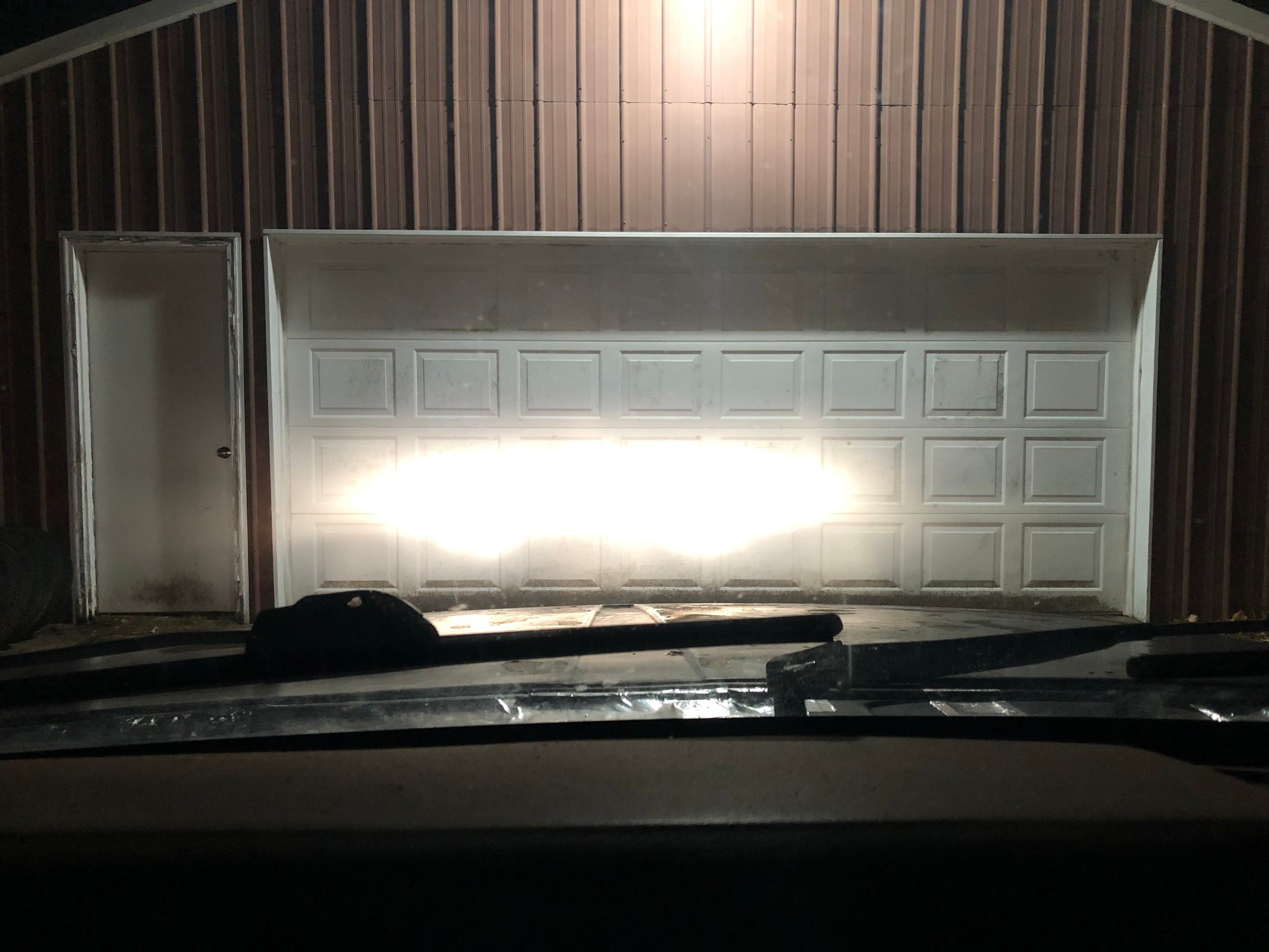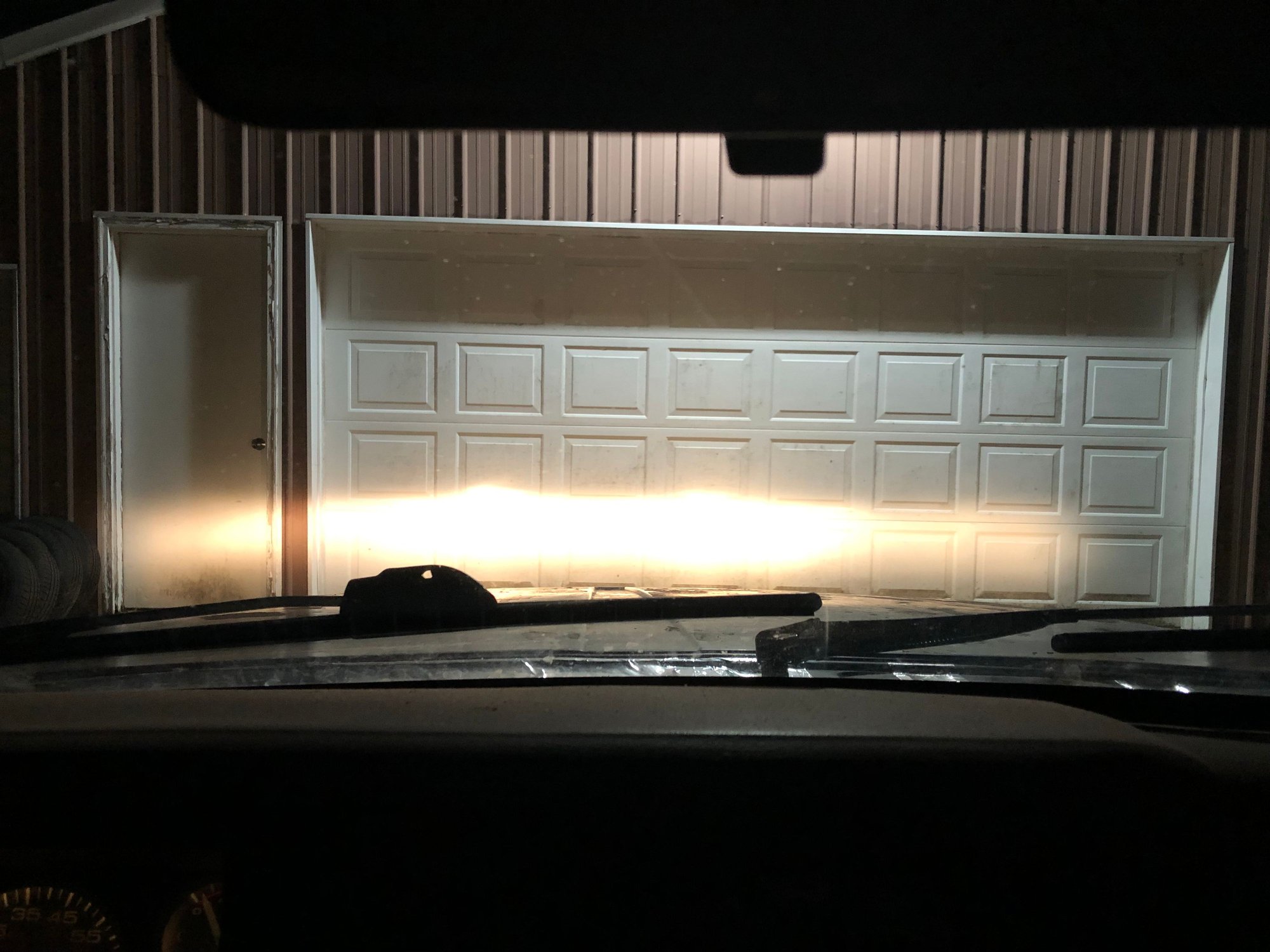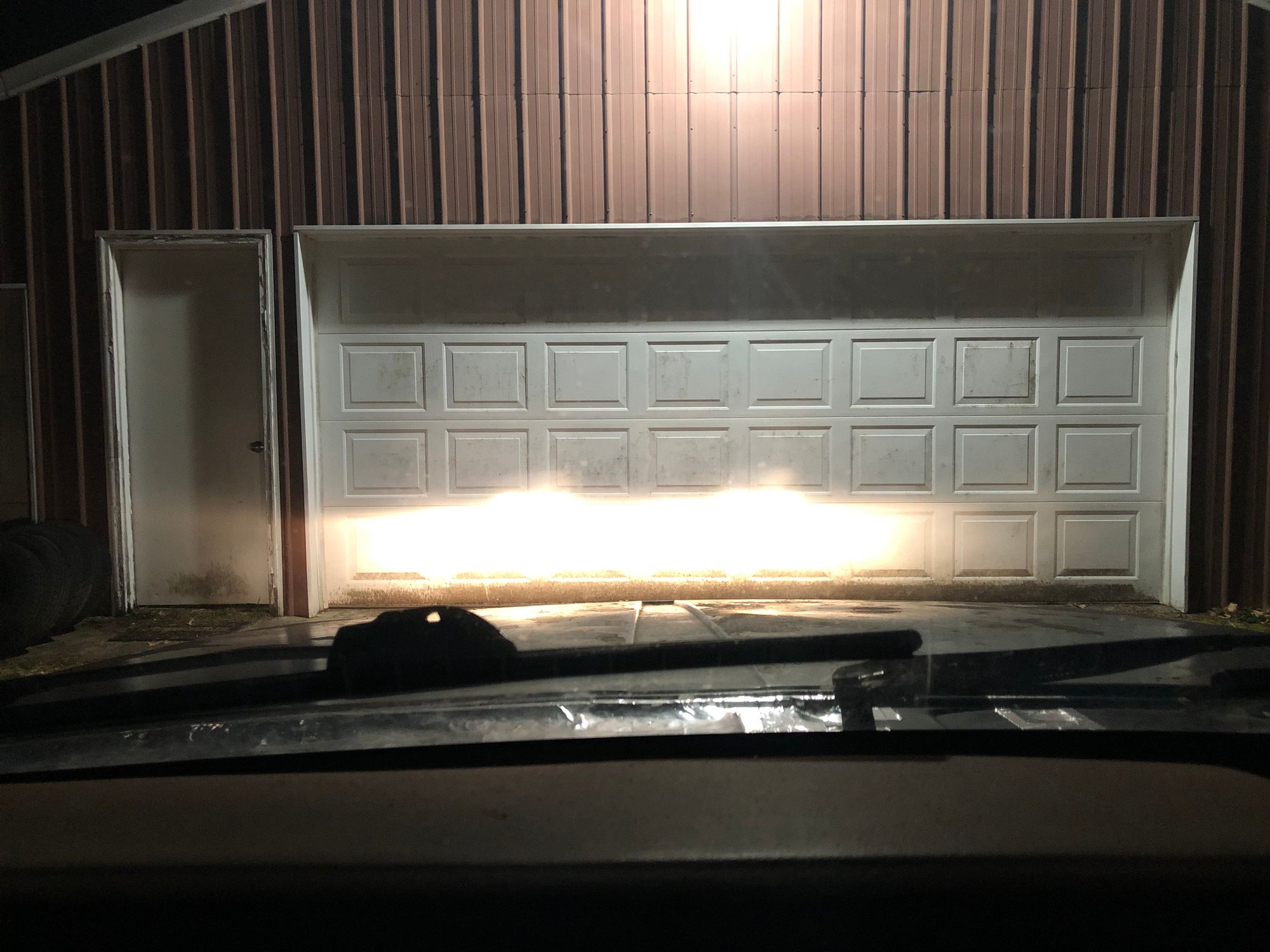Out on the road, it’s a massive improvement! I took it about a mile down my road. I encountered about 5 cars getting home from work, nobody flashed me. What’s weird is on the garage door, the lows look in the same ballpark but with a better cutoff, but the highs look insane. On the road, the lows are way more intense than the highs, though the highs are spread out sufficiently to see well when there’s no traffic. The lows have the slight yellow hue, where the highs are whiter due to the blue in the high beam area. But these are a big help when other cars are approaching.