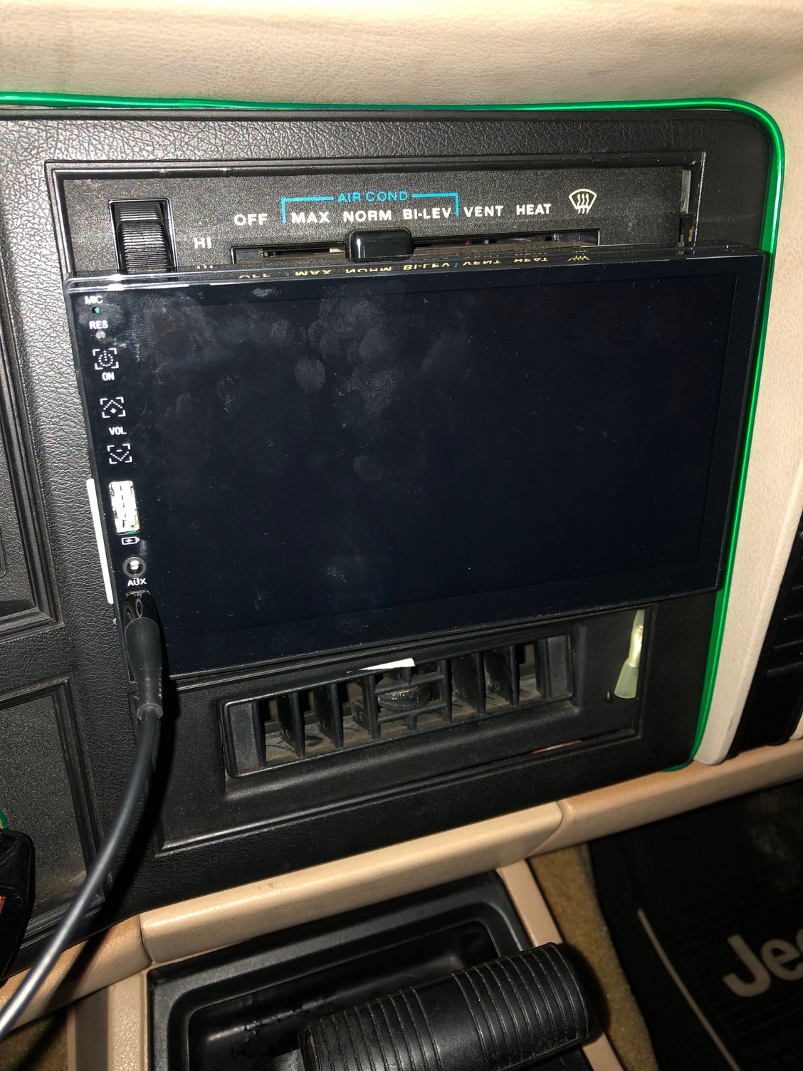 If you can live with the AC vents or AC controls being a little blocked, then the 8" floating diplay headunits from Boss and Jensen are the best options. I have an 8" Jensen in my WJ, and its not bad. The display looks good and is reasonably customizable. And its got a volume **** which I love. But the CPU is pretty slow, so the interface lags. Sound quality is ok. Good thing is that these are inexpensive.