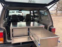 Had a buddy build up a aluminum drawer for the rear of the jeep.