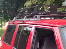 Put this Surco rack on this weekend along with a new cb setup. That mount bracket is from ThatXJGuy. Pretty sweet. I got the rack on Craigslist for $50 and an hour drive. Bought the rain gutter mounts for $65 and there it is. Gonna put the spare up there along with a few other trail related things. I'll post up some new pics this weekend